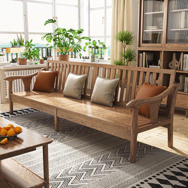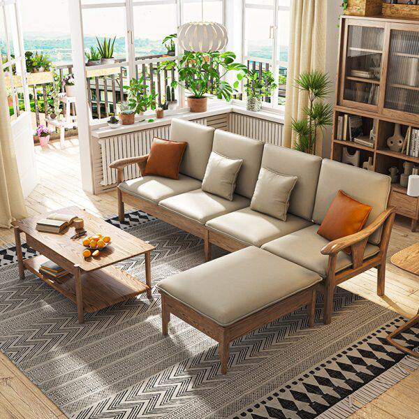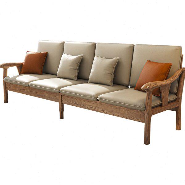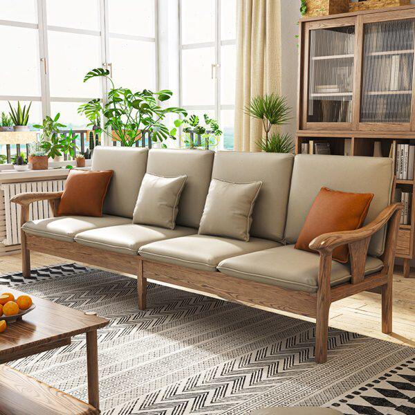 蜡新中式两用木直排白科技布沙发夏北欧客厅家用小户型冬实木沙发