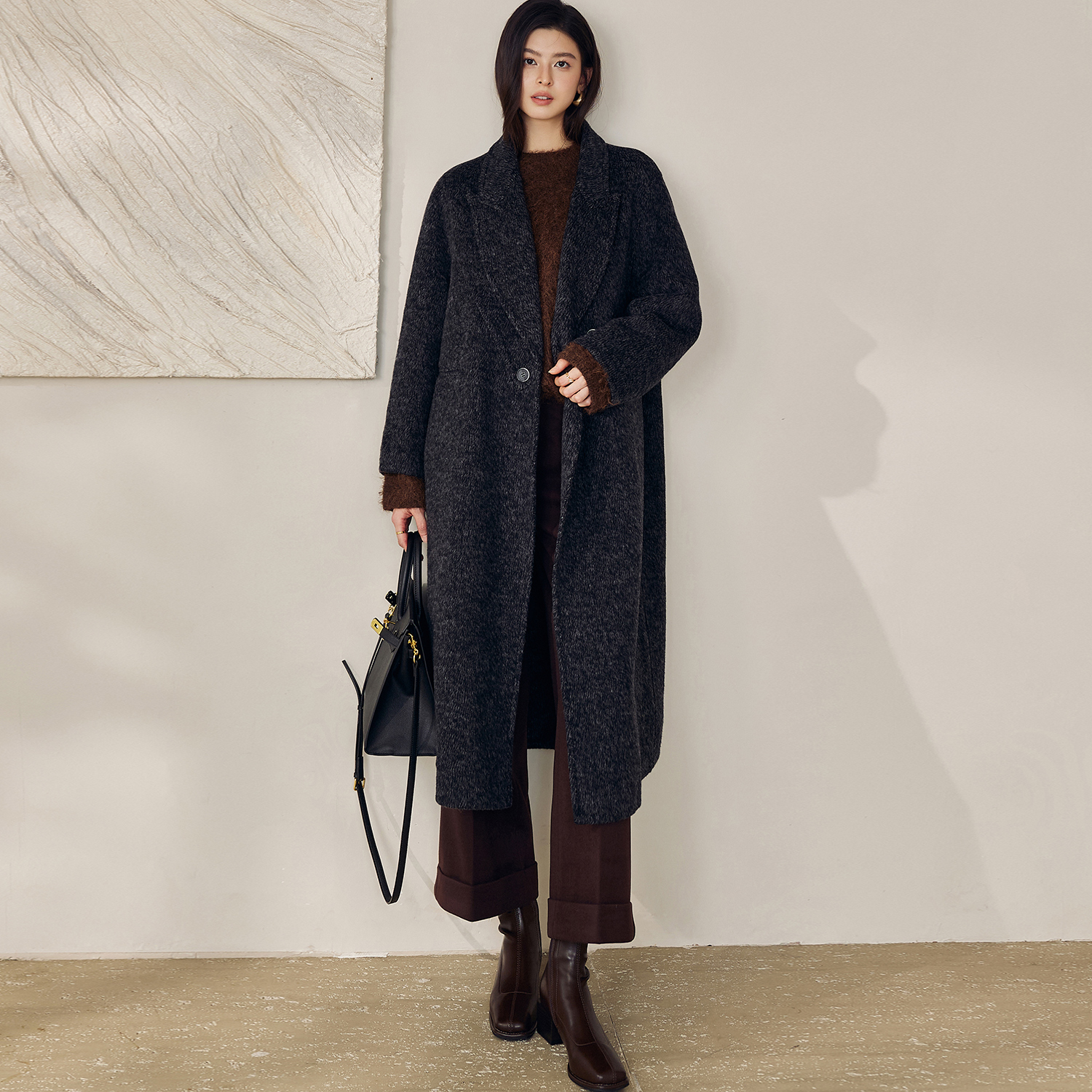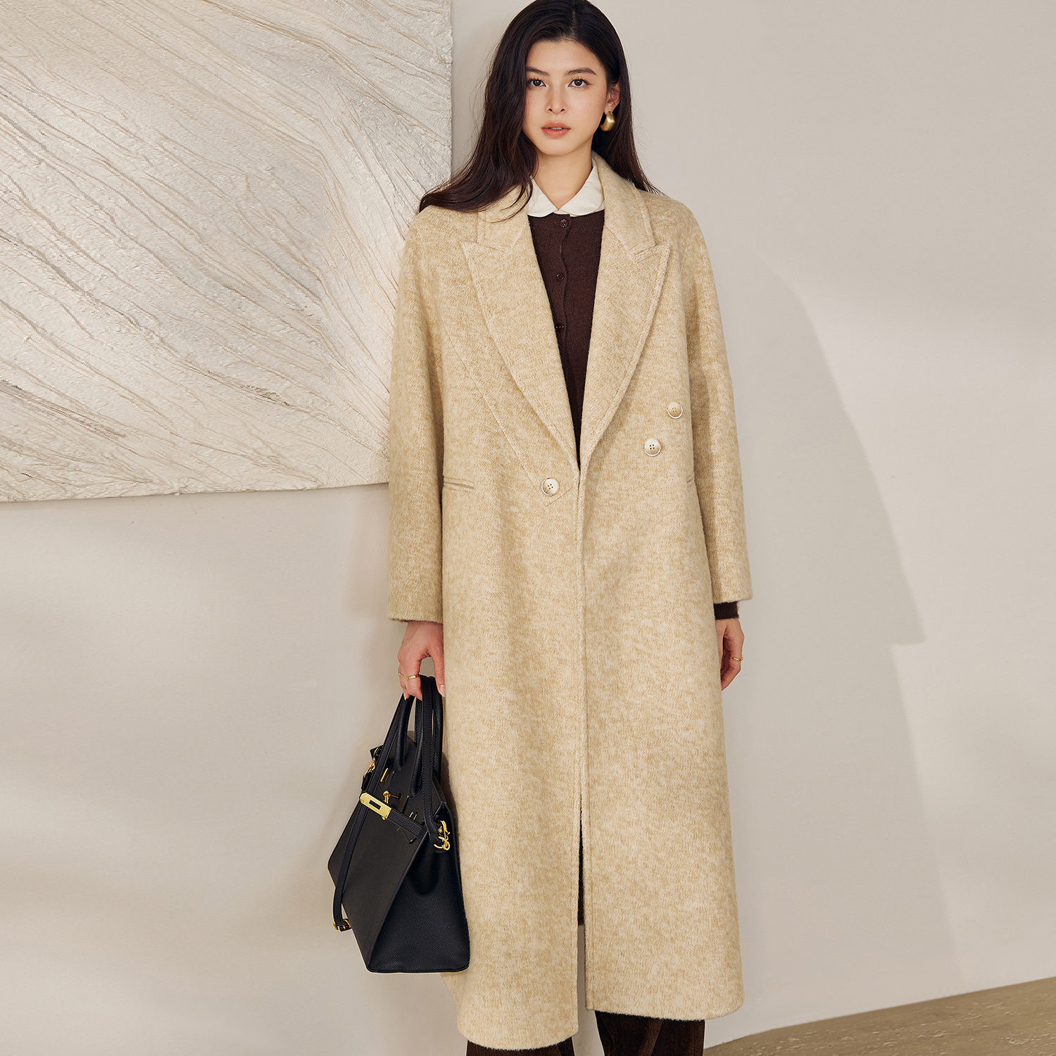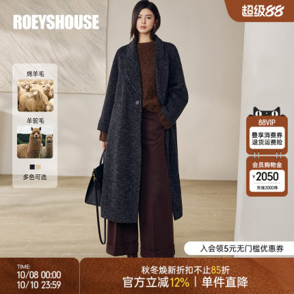 罗衣简约双面呢毛呢外套女2025冬季新款轻奢66.7%绵羊毛大衣12931
