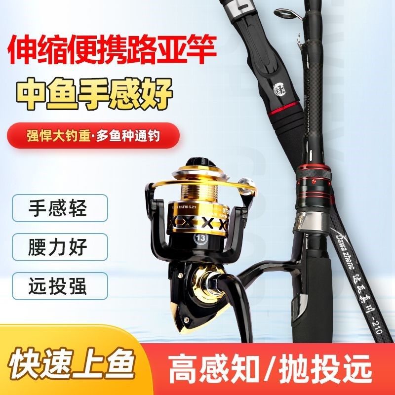 新款伸缩路亚竿可携式碳素超轻远投海竿钓鱼滑漂振出式路亚竿套装