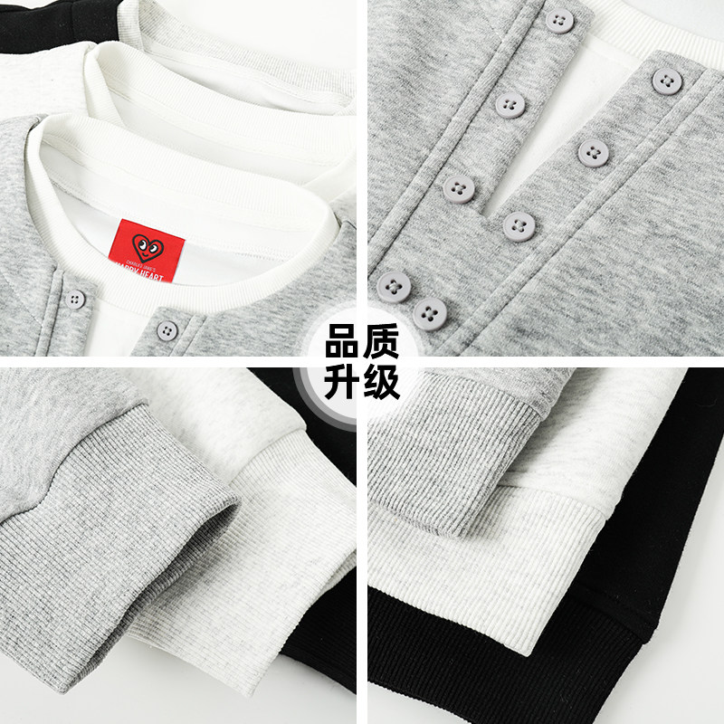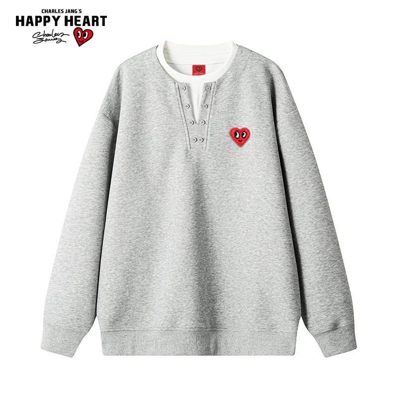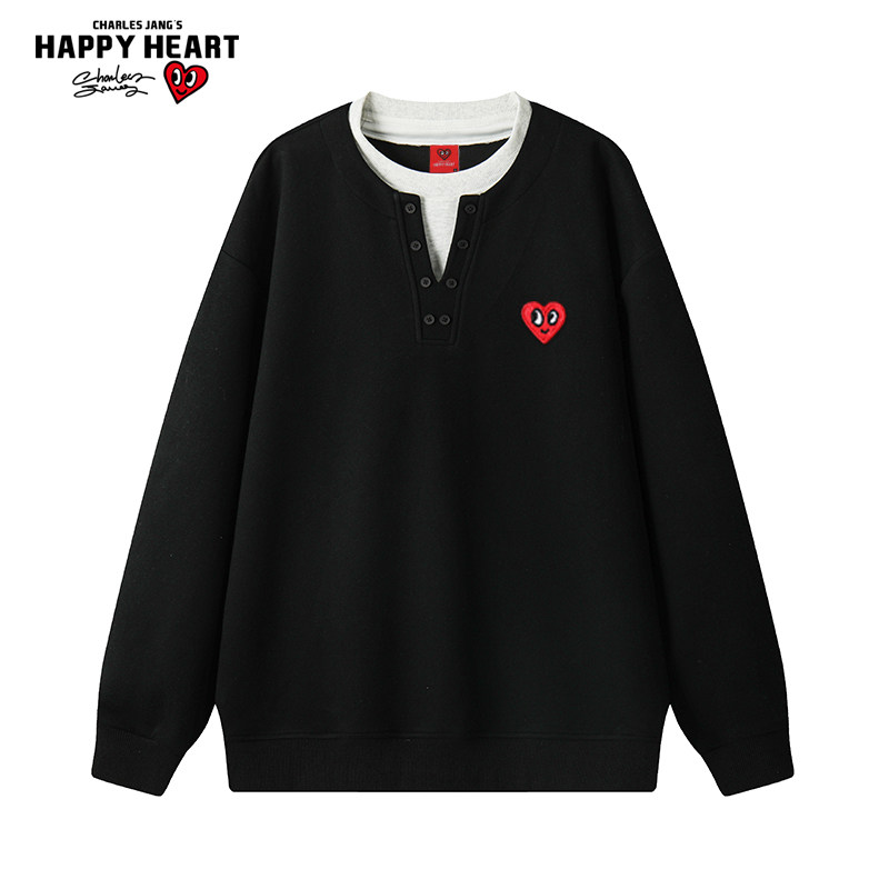 查尔斯桃心春秋季假两件卫衣男2025新款圆领百搭休闲情侣长袖上衣