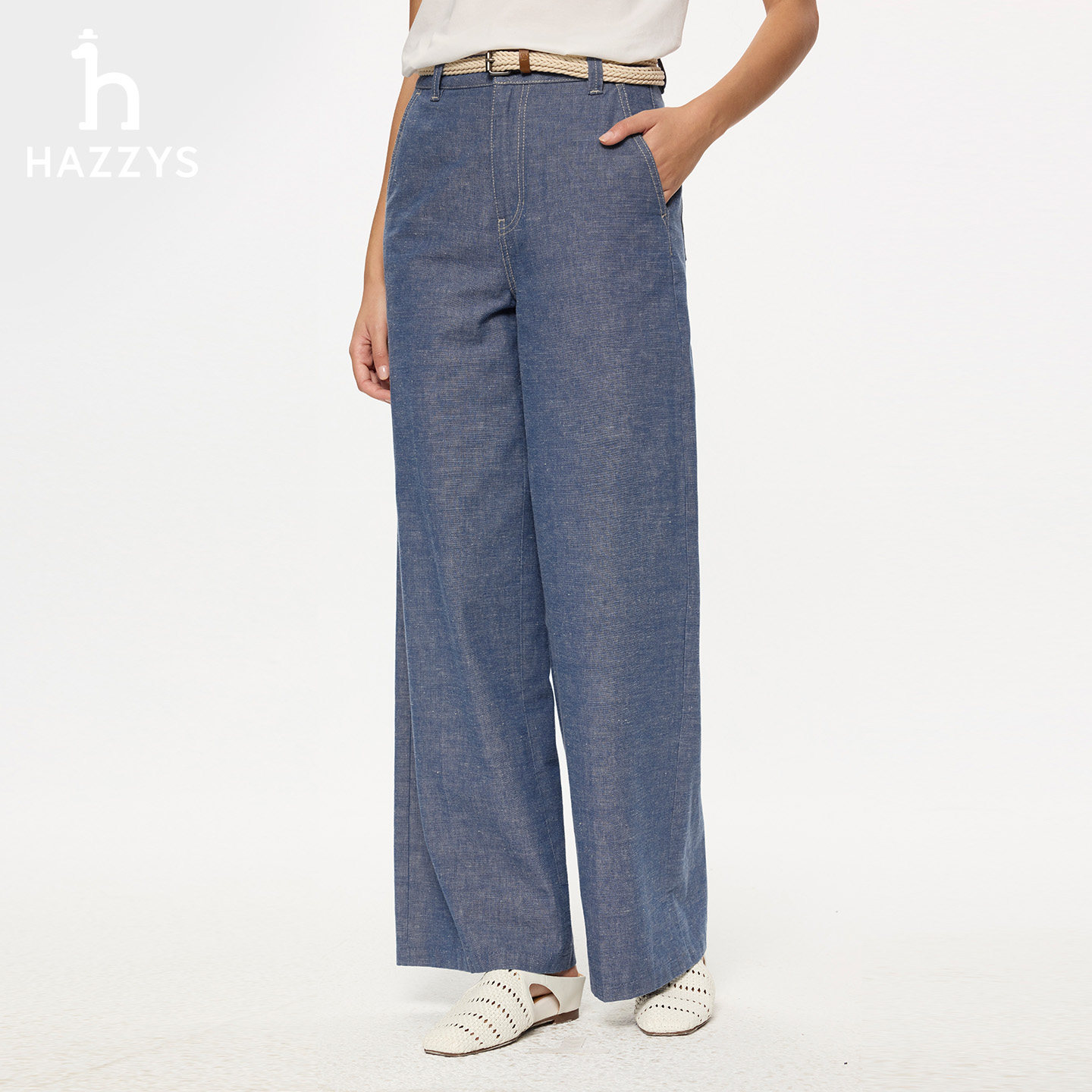【专柜正品】Hazzys哈吉斯通勤牛仔裤女士2026年新款休闲阔腿裤