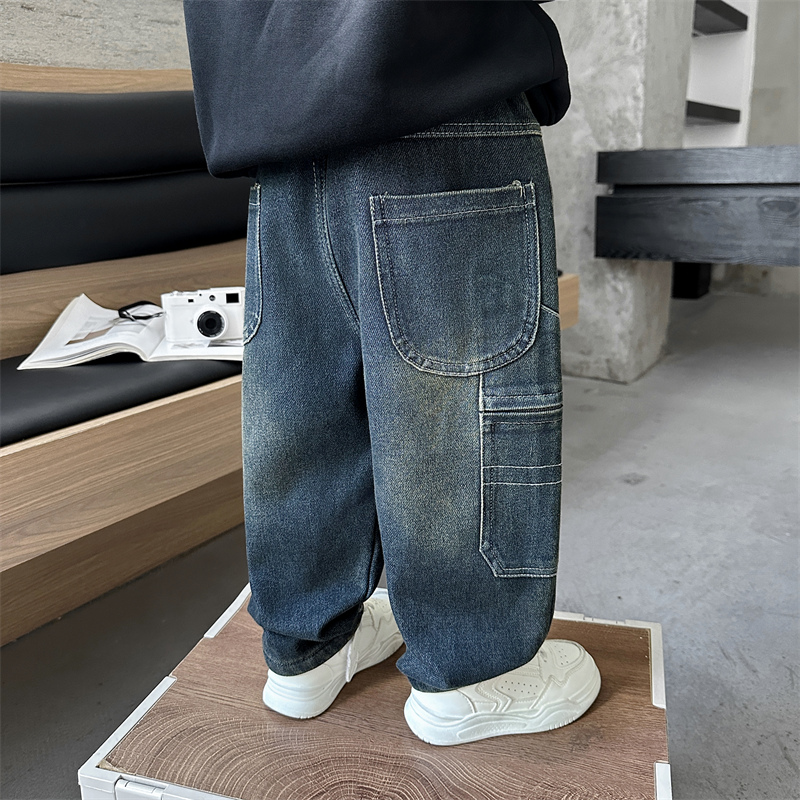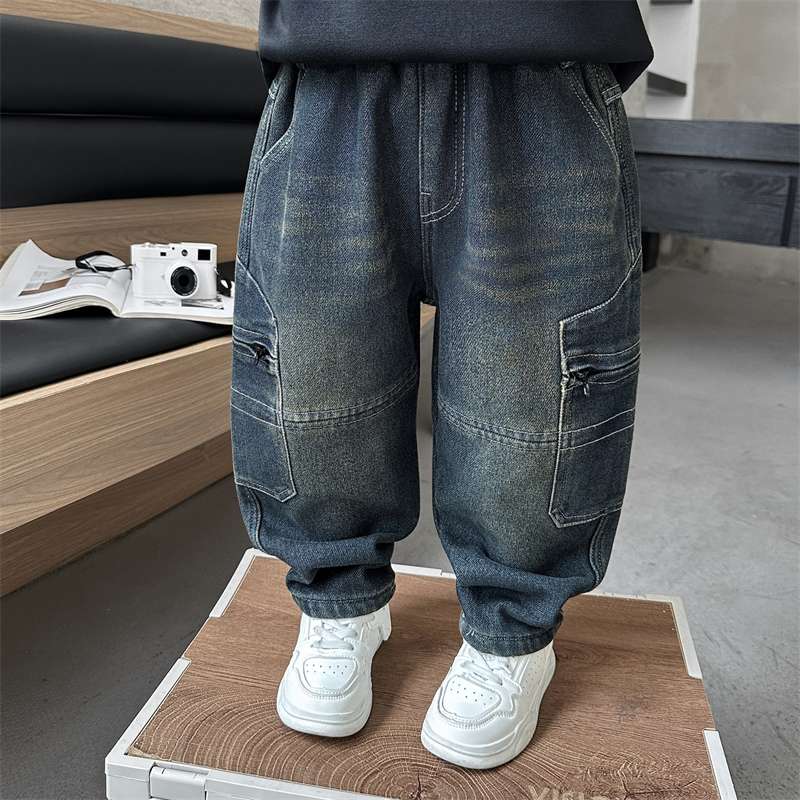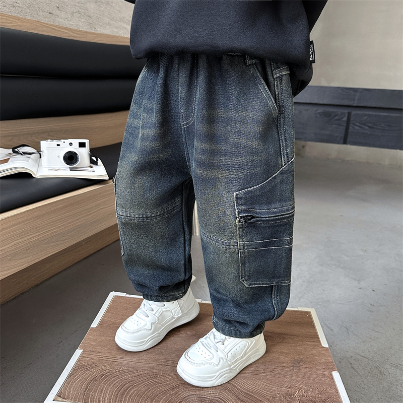 男童裤子秋冬装2025新款中小童男孩冬季休闲裤儿童加绒加厚牛仔裤