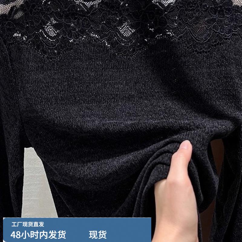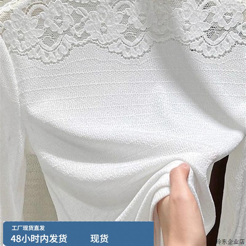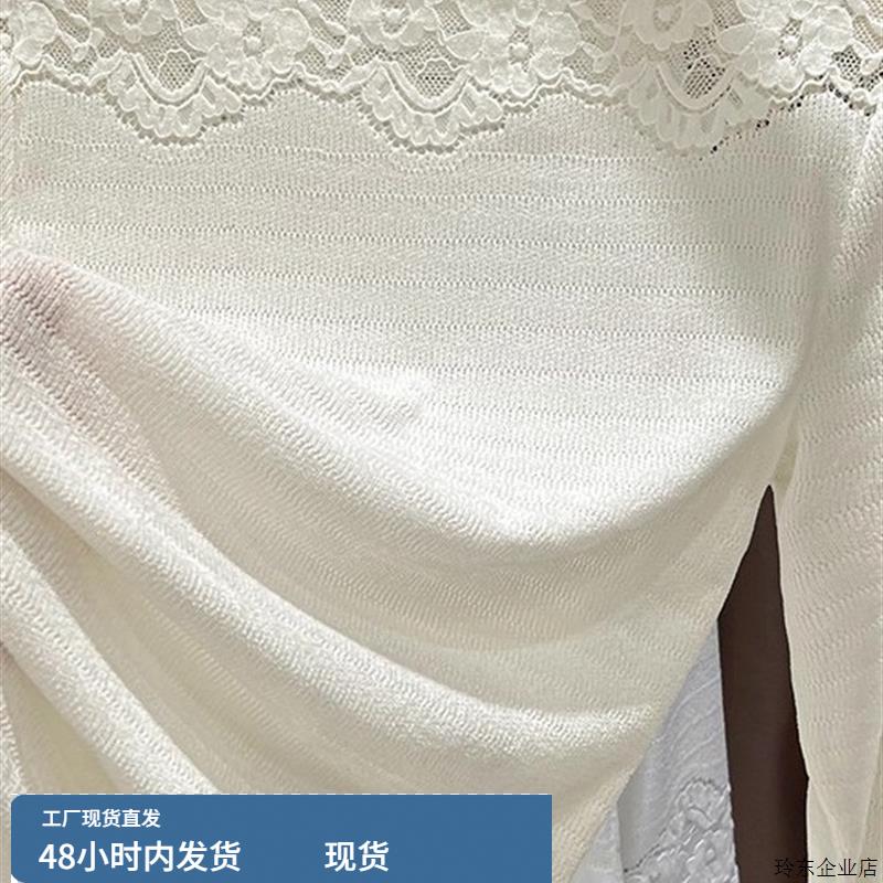 2025早秋新款法式蕾丝拼接高领长袖打底衫女白色镂空针织上衣内搭
