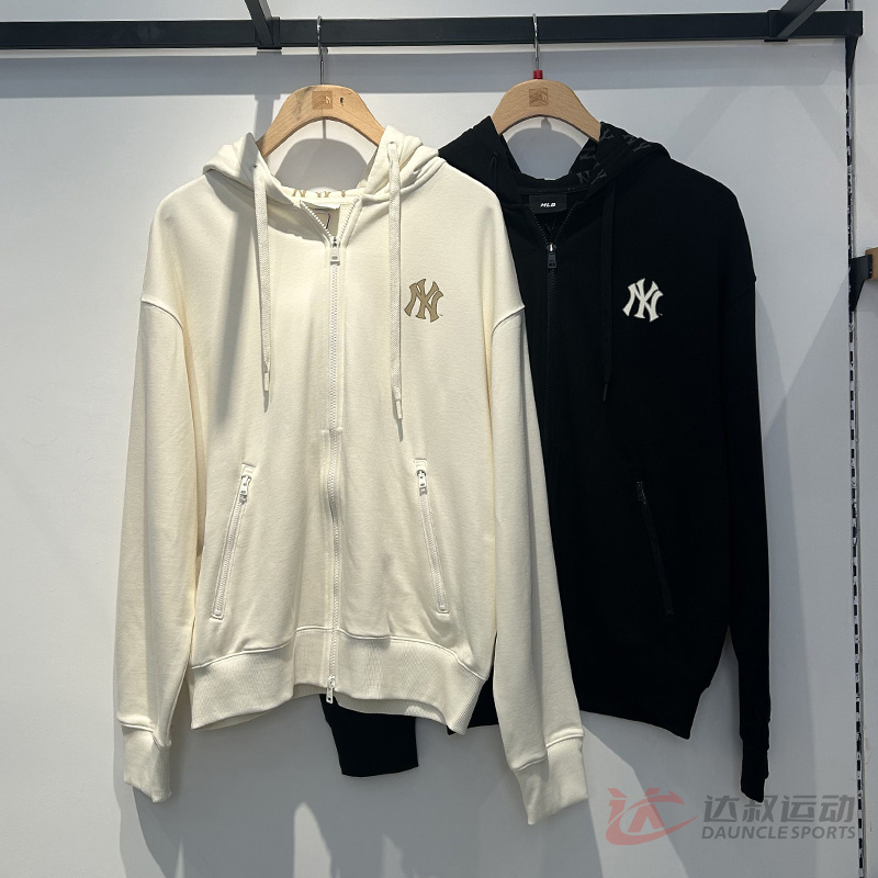 25新款MLB外套男女NY复古老花拉链连帽卫衣宽松休闲夹克3ATRM0451