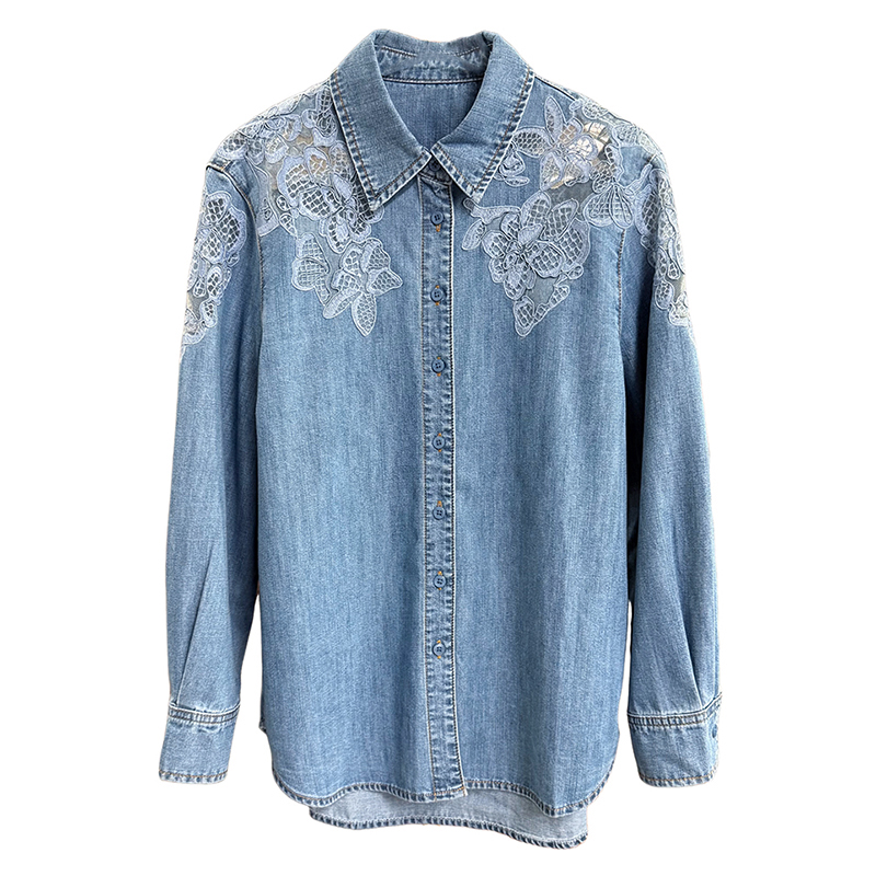 臻藏级牛仔系列!重工刺绣牛仔长袖衬衫上衣女 W25430~JS