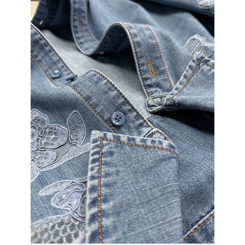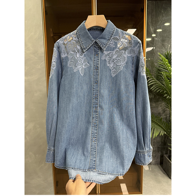 尖货!重工刺绣牛仔长袖衬衫上衣