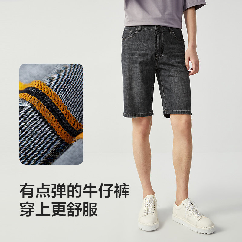 红豆弹力轻薄牛仔短裤25年夏季新品长绒棉直筒裤男士工装5分裤