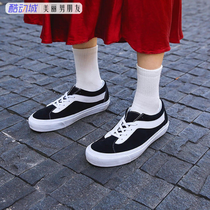 翻毛皮VANS滑板鞋黑白低帮男女