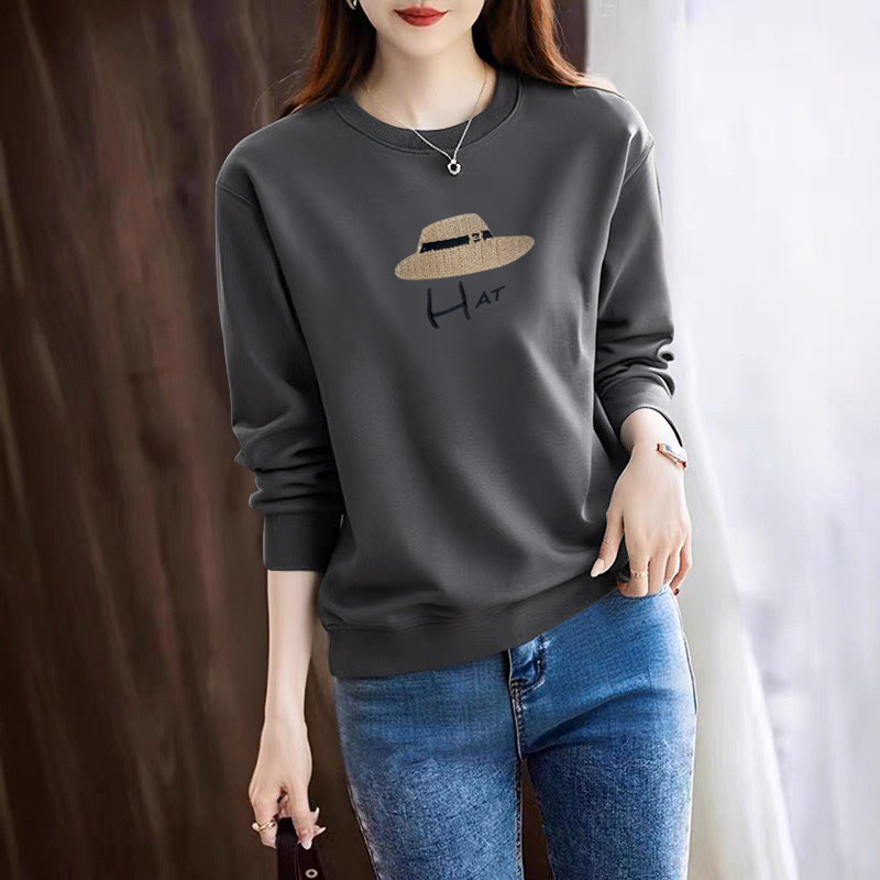 品牌外贸出口气质纯棉长袖打底卫衣女秋冬时尚宽松休闲打底上衣潮