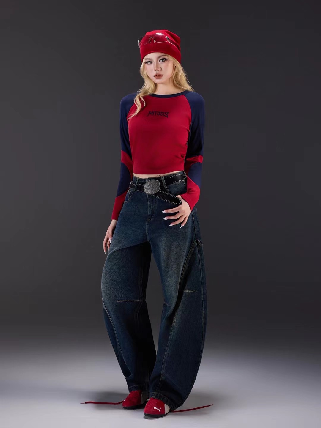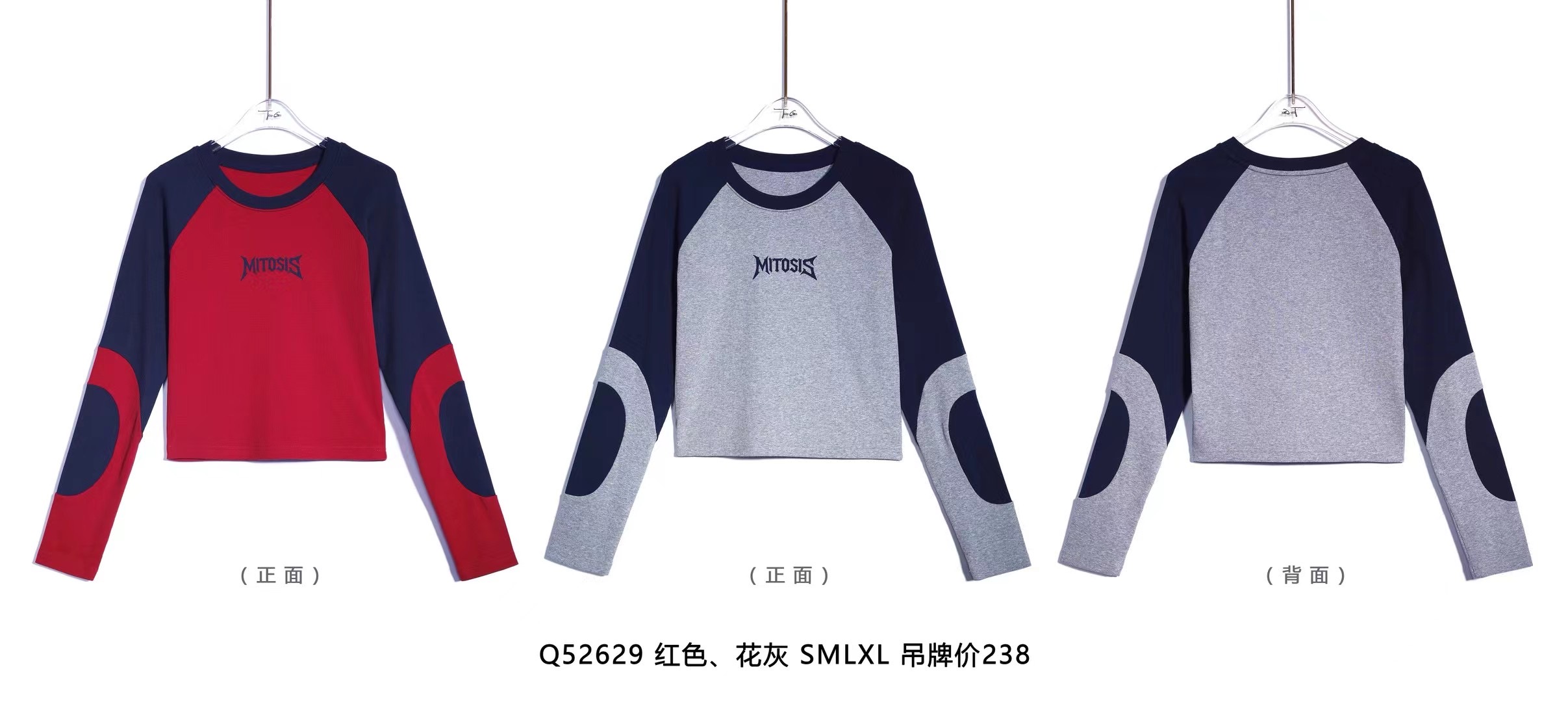 拓谷潮牌插肩袖长袖T恤秋季新修身显瘦撞色打底衫短款上衣Q52629