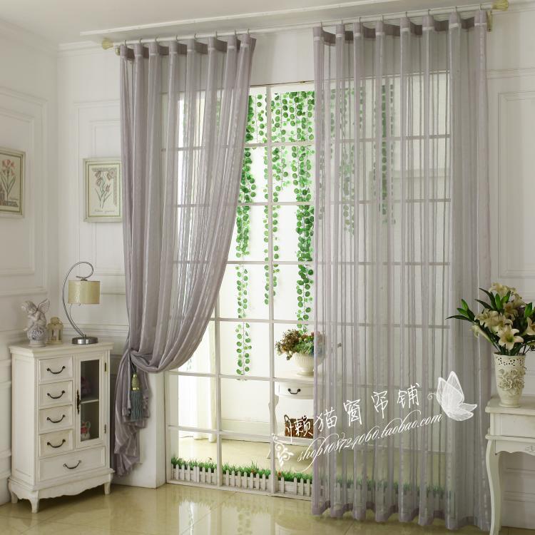 现代简约纯色遮光窗p帘成品窗纱纱帘阳台客厅卧室窗帘布麻纱