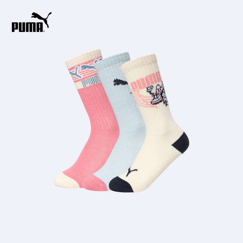 PUMA彪马儿童袜子新款夏季男女童时尚潮流运动袜3双装中高筒防滑w
