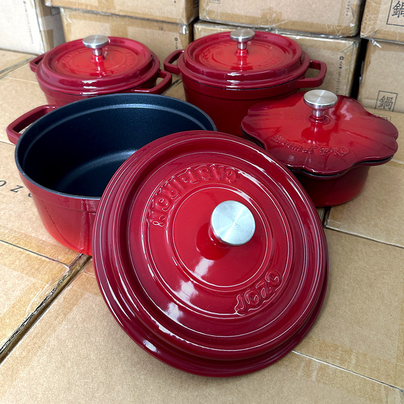防熏黑[樱桃红]出口珐琅锅汤锅铸铁锅炖锅家用炖盅砂锅电磁炉煮锅