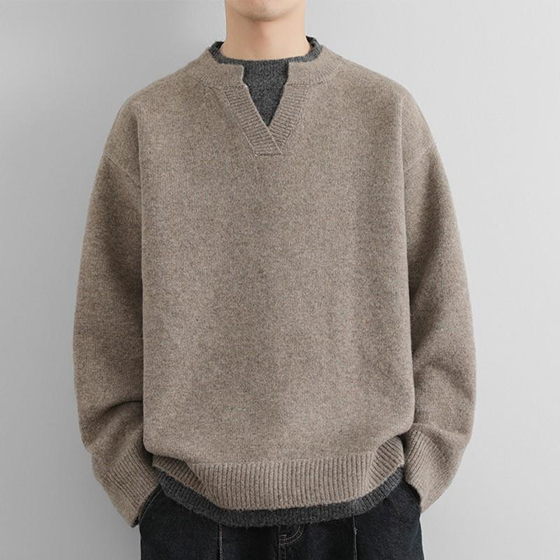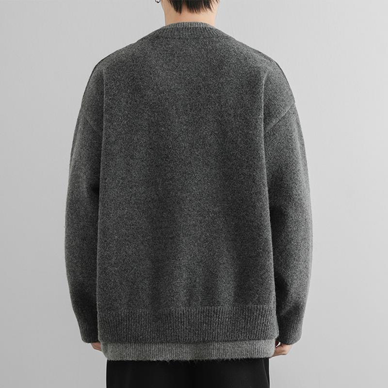 秋冬男士针织毛衣内搭师款假两件双层V领男冬款衫自厚衫1005kz