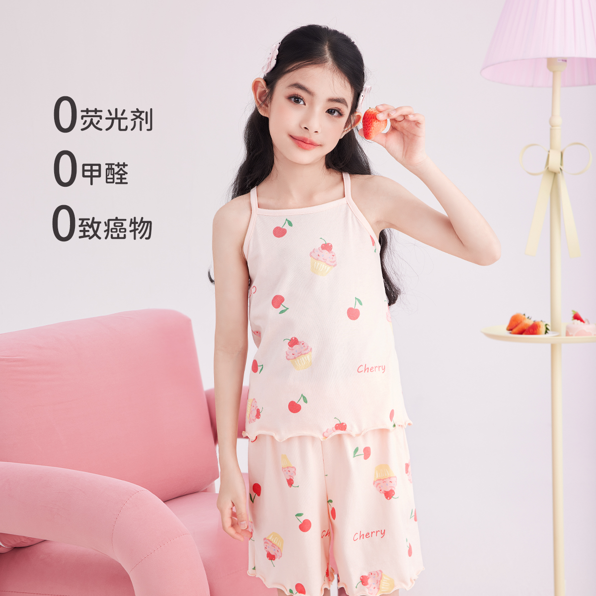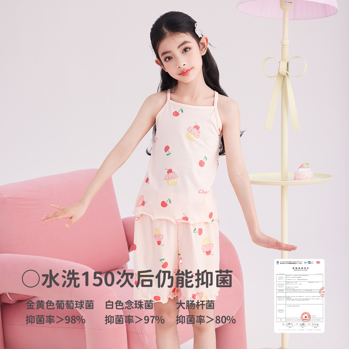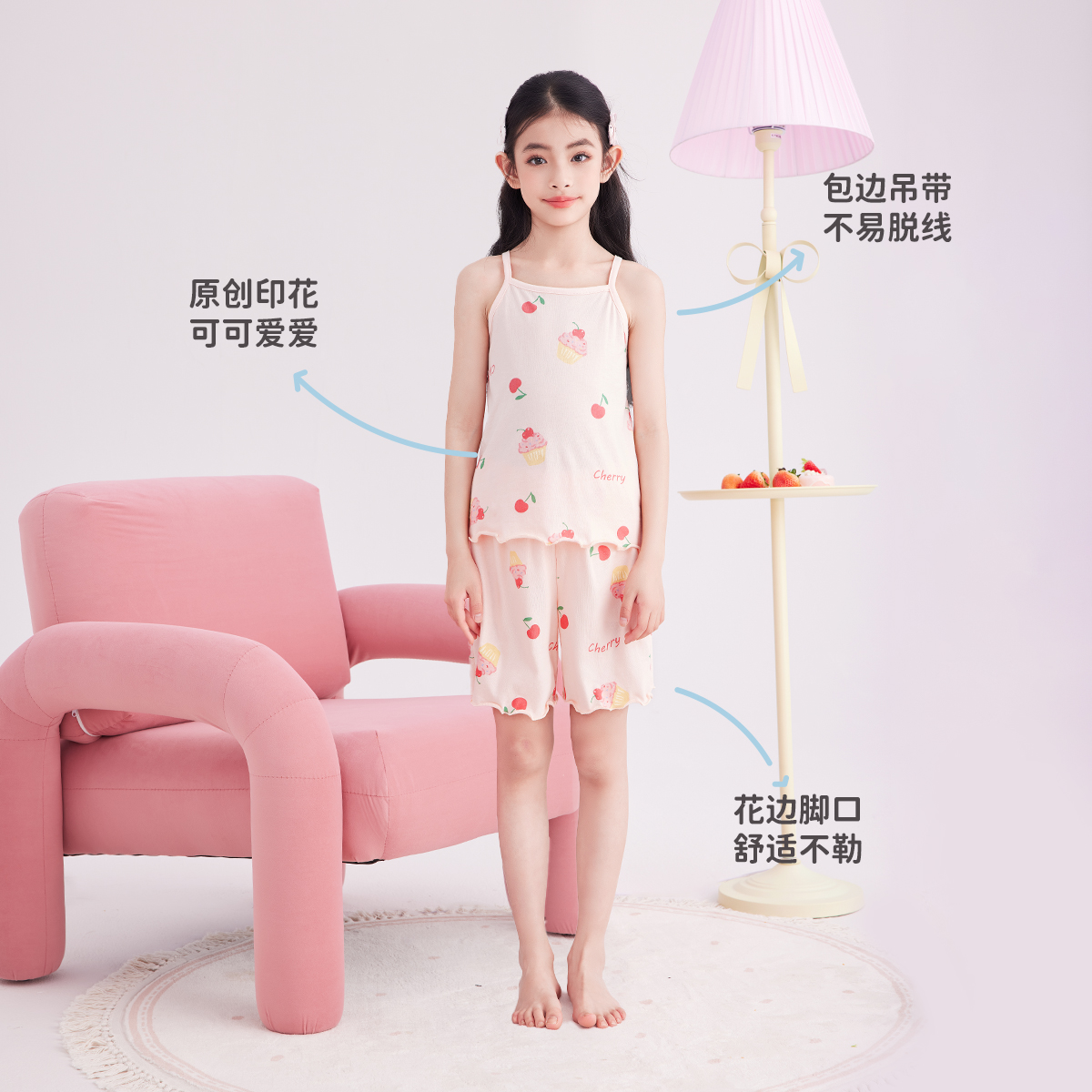 deesha笛莎女童吊带背心短裤套装夏季纯棉睡衣A类抑菌薄款家居服
