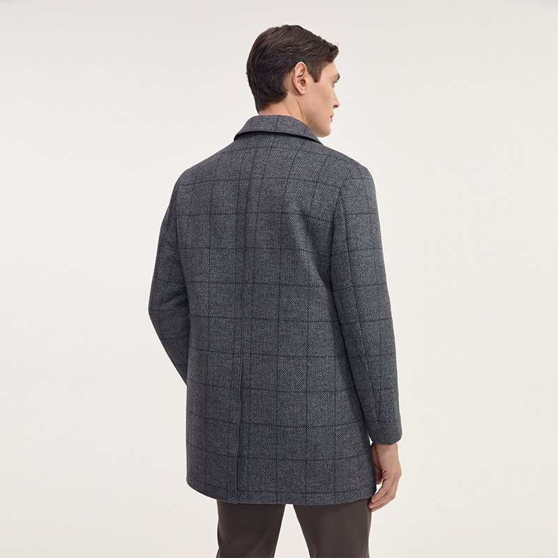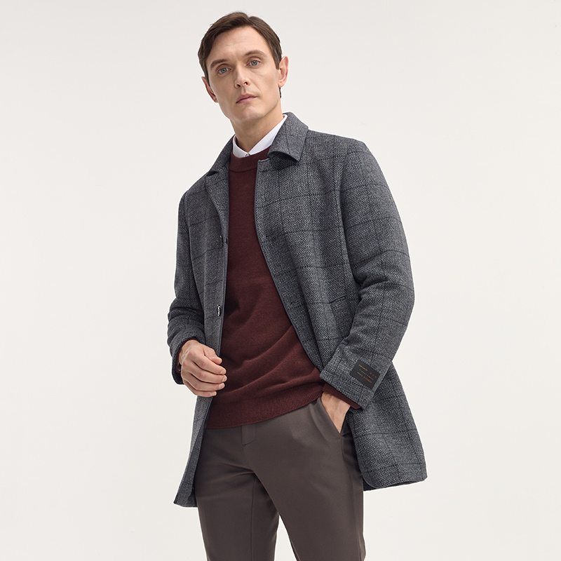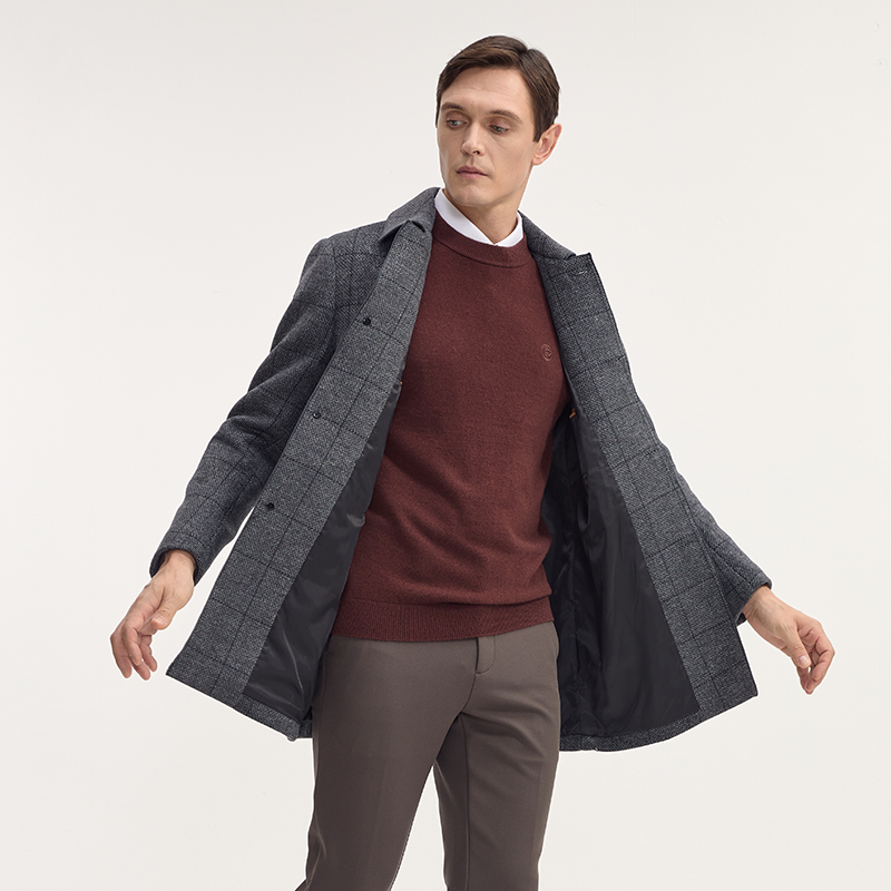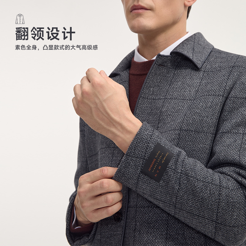 DIDIBOY迪迪博迩男士款秋冬季翻领格子外套中年爸爸羊毛呢子大衣