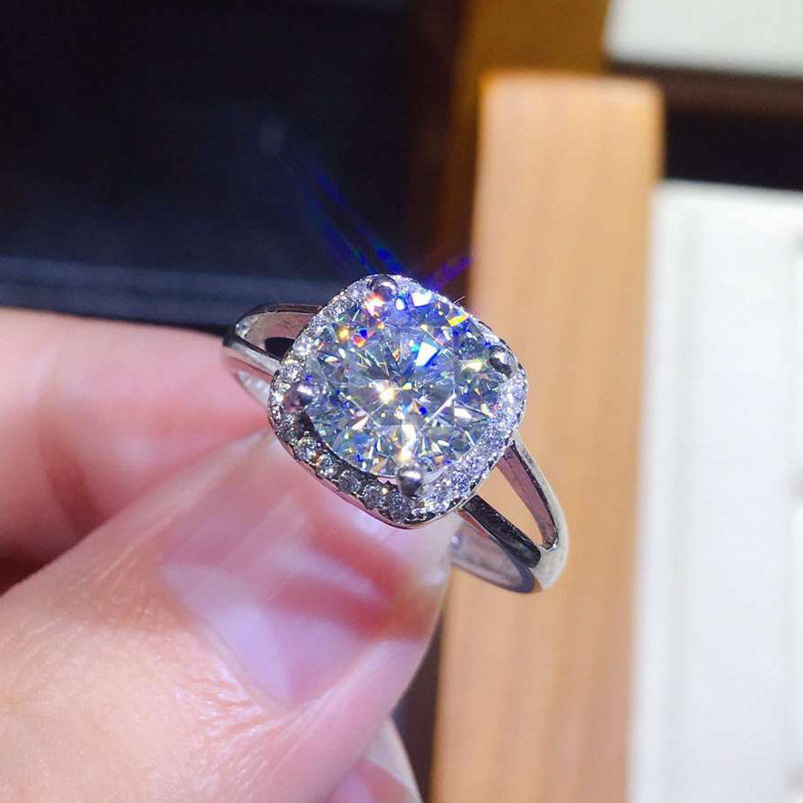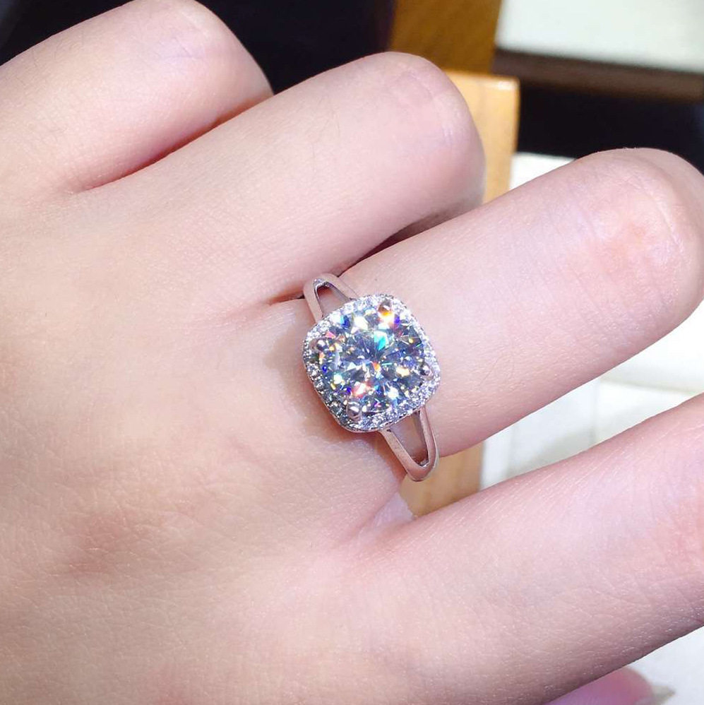 2克拉结婚钻戒少女甜美镶满钻八心八箭仿真莫桑钻几何形闪亮戒指