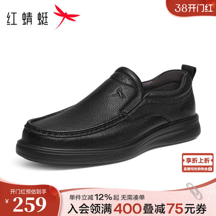 红蜻蜓男士皮鞋春季新款一脚蹬男鞋休闲真皮软底舒适中老年爸爸鞋