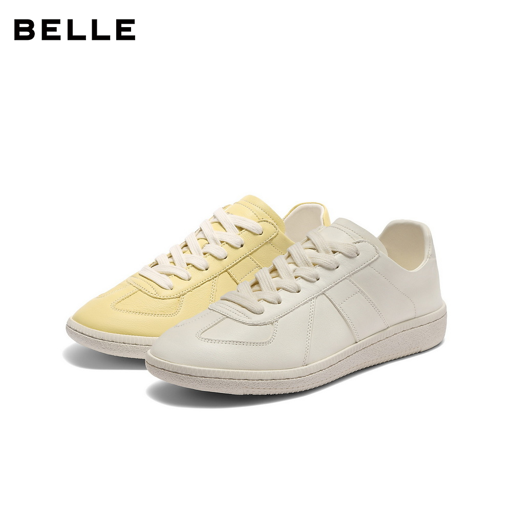 百丽女鞋子复古德训鞋秋季新款真皮柔软运动风休闲板鞋B2634CQ5