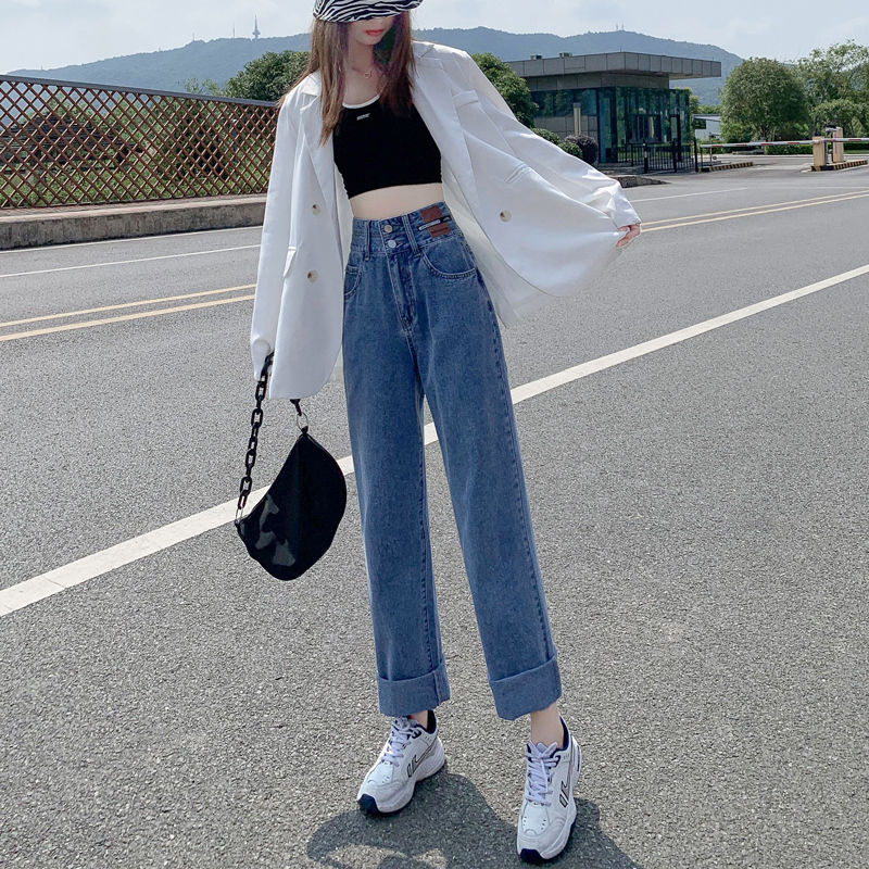 新款韩版双扣宽松显瘦春秋牛仔裤
