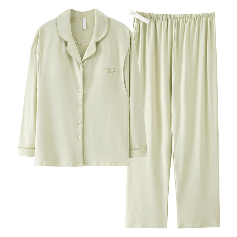 都市丽人月子服夏季纯棉哺乳孕妇睡衣带胸垫女长袖产后喂奶家居服