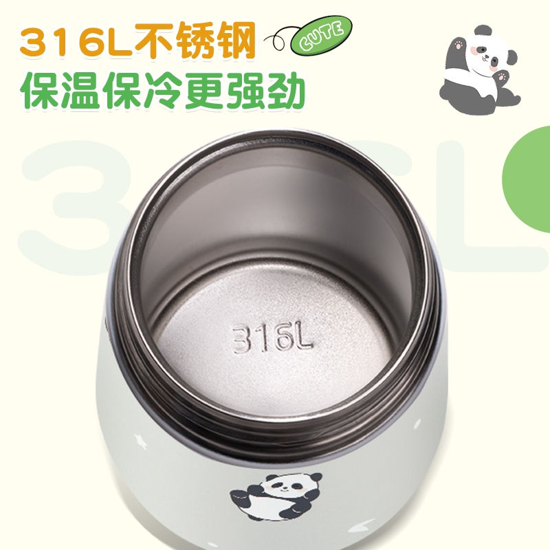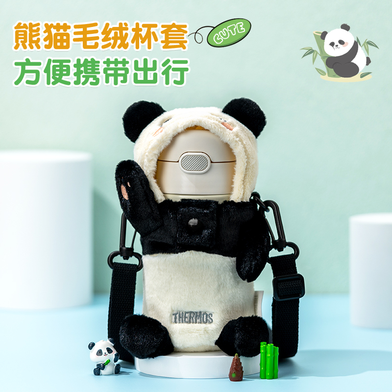 膳魔师儿童水杯宝宝吸管杯316L不锈钢水杯幼儿园学生保温杯熊猫