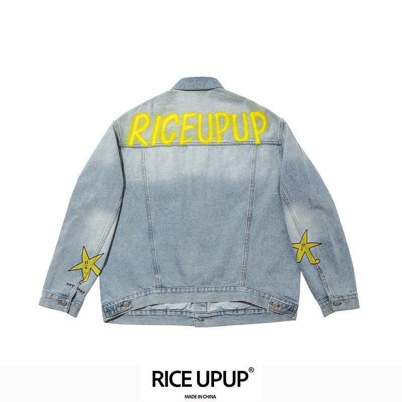 RICEUPU-"幸运星"浅色水洗星星牛仔夹克