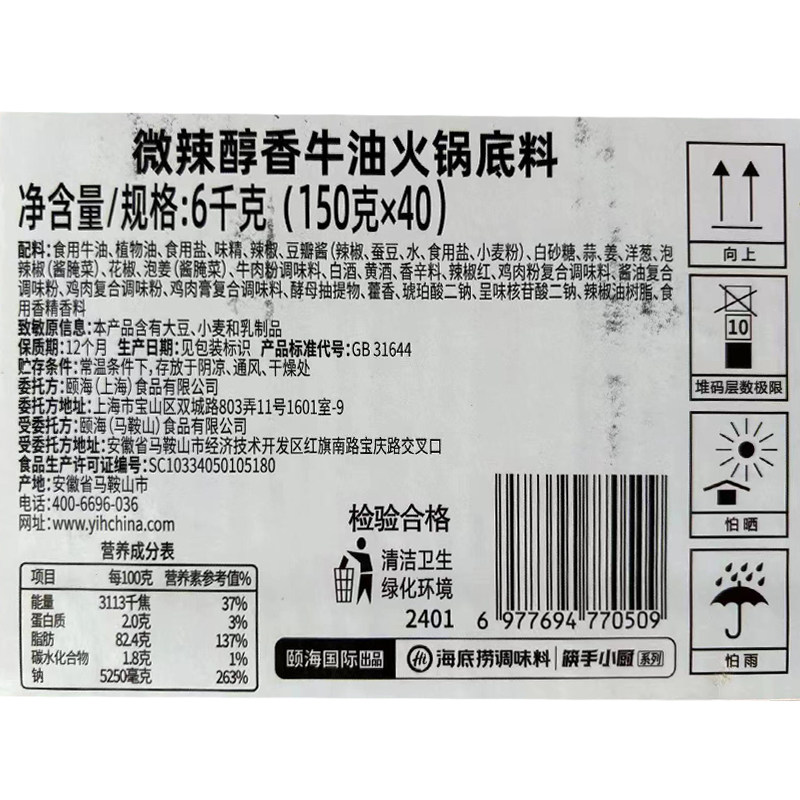 海底捞微辣醇香牛油火锅底料150g*40包麻辣烫地摊牛杂火锅开店用