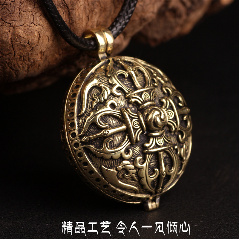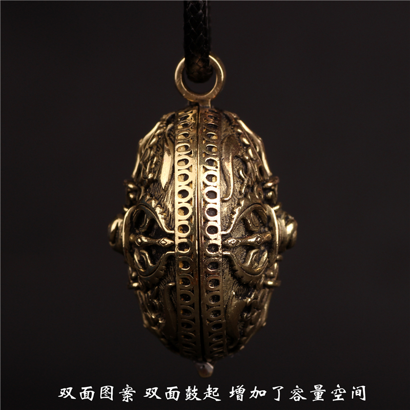 尼泊尔手工大小号黄铜嘎乌盒复古可打开项链吊坠圆形西藏噶乌男女