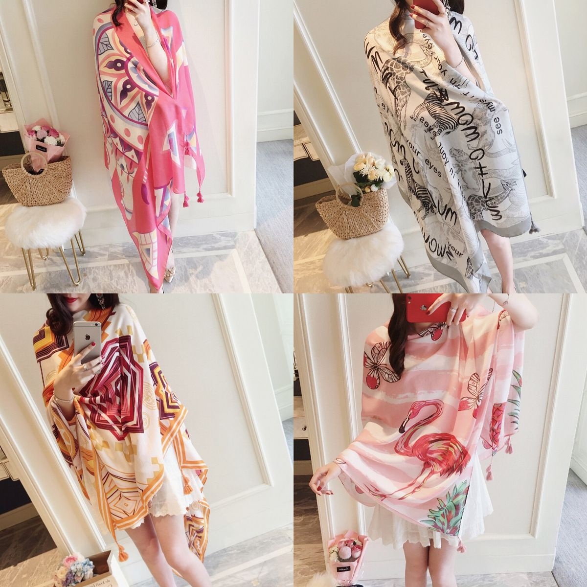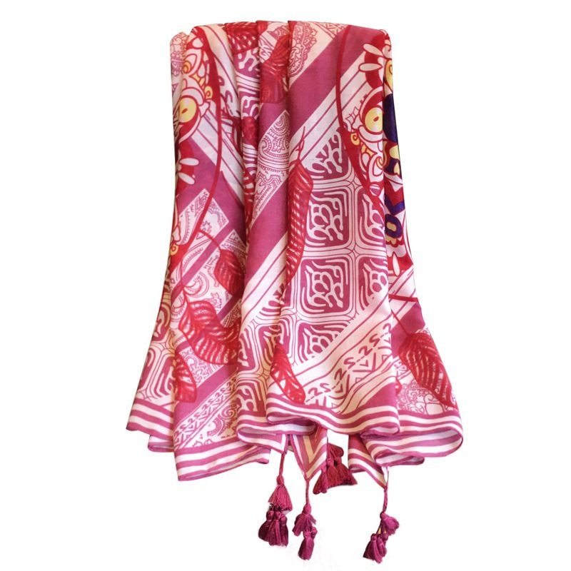 小溜春夏季棉麻红色民族风旅游海边度假防晒围巾披肩丝巾沙滩巾女