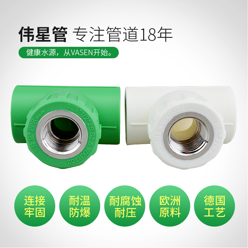 伟星管PPR热水管件4分6分内丝三通20*1/2内牙三通 25*1/2外丝三通