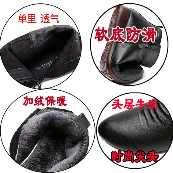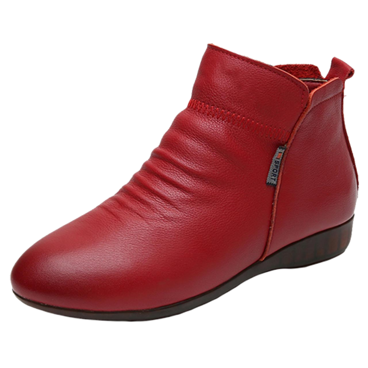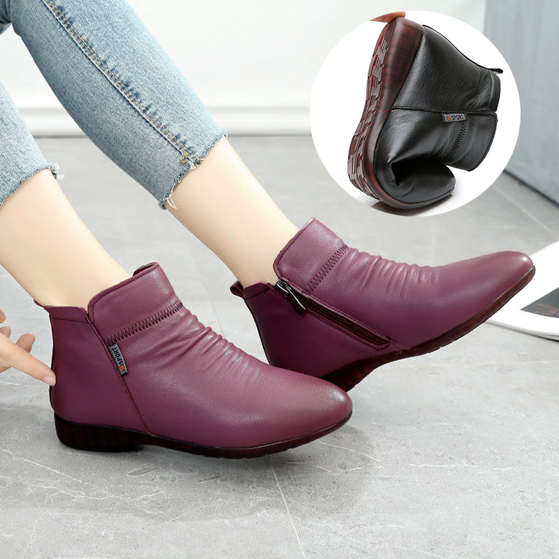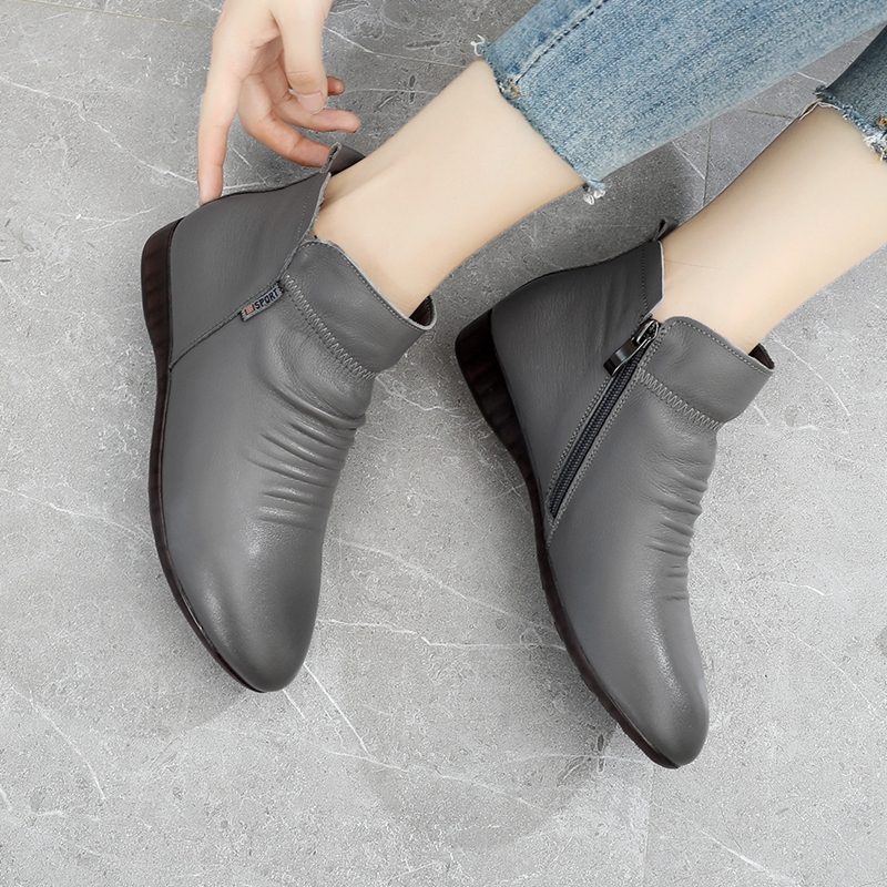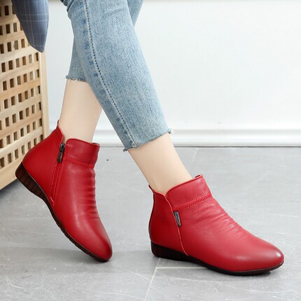 冬季新款全牛皮低跟女靴马丁靴真皮短靴春秋加绒平跟靴大码女棉鞋