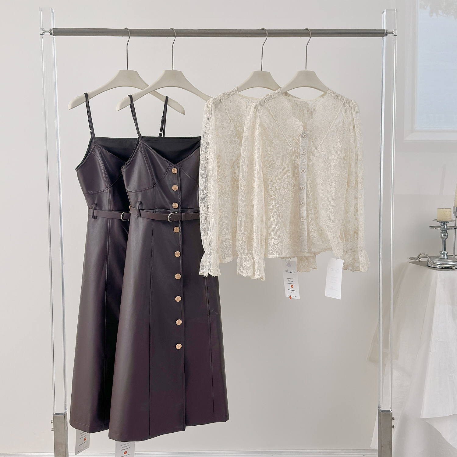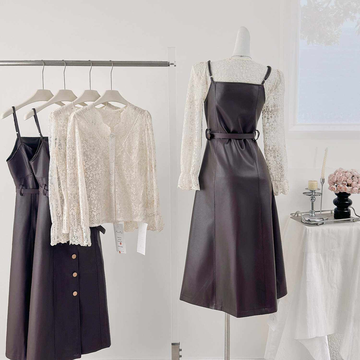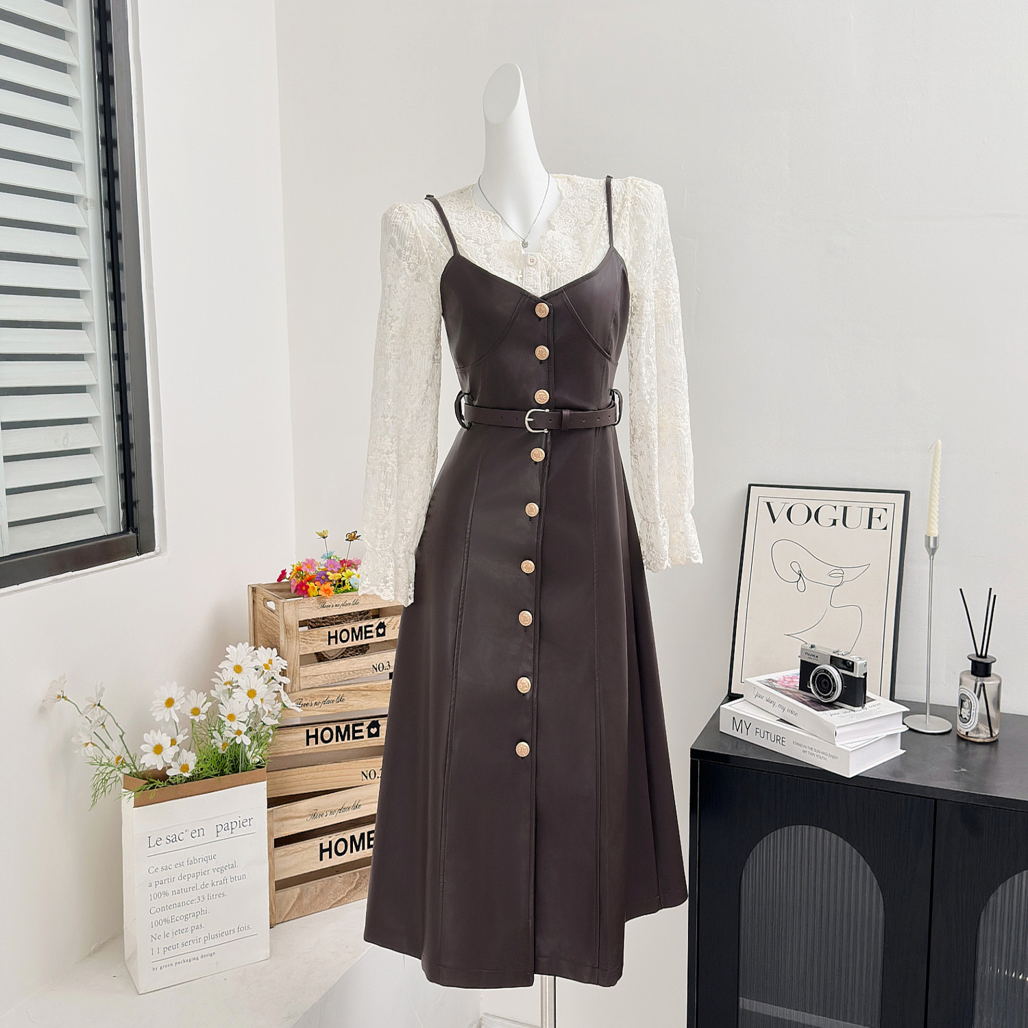 2025早秋新款气质时尚百搭优雅收腰显瘦名媛减龄吊带皮U连衣裙女