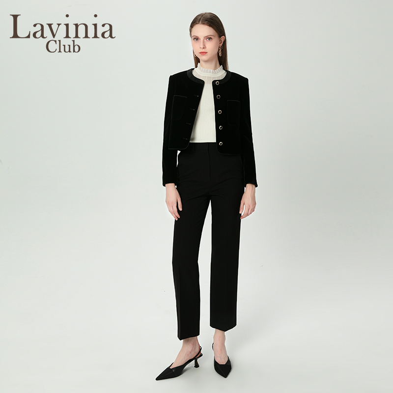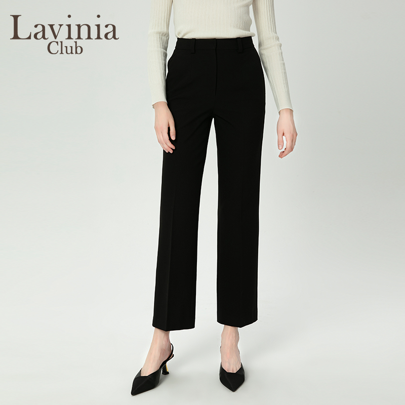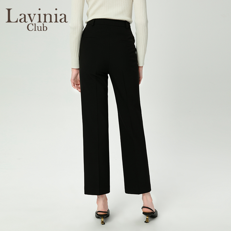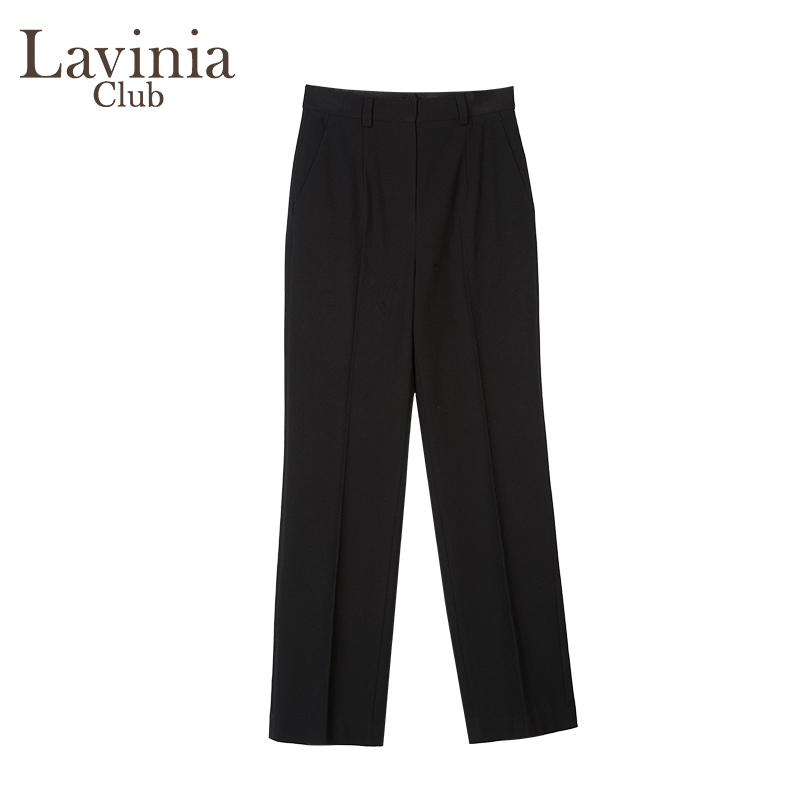 Lavinia黑色西装裤女冬季新款高腰显瘦微喇直筒休闲裤P47K101