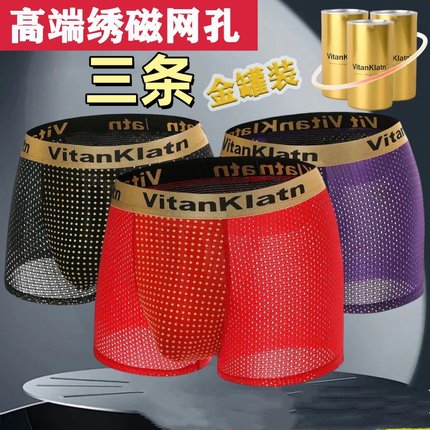 新款VK英国卫裤官方正品冰丝网孔线缝磁石透气速干男士保健内裤夏