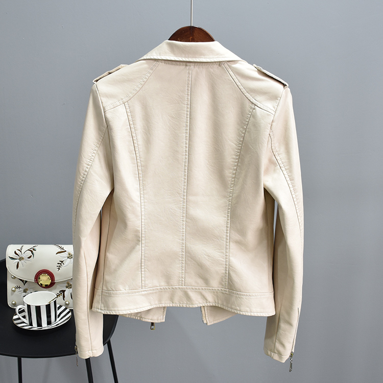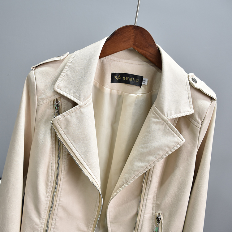 2025春装新款修身西装领拉链机车皮夹克女水洗PU皮衣小外套女长袖