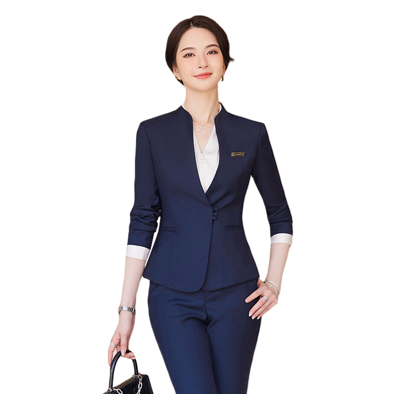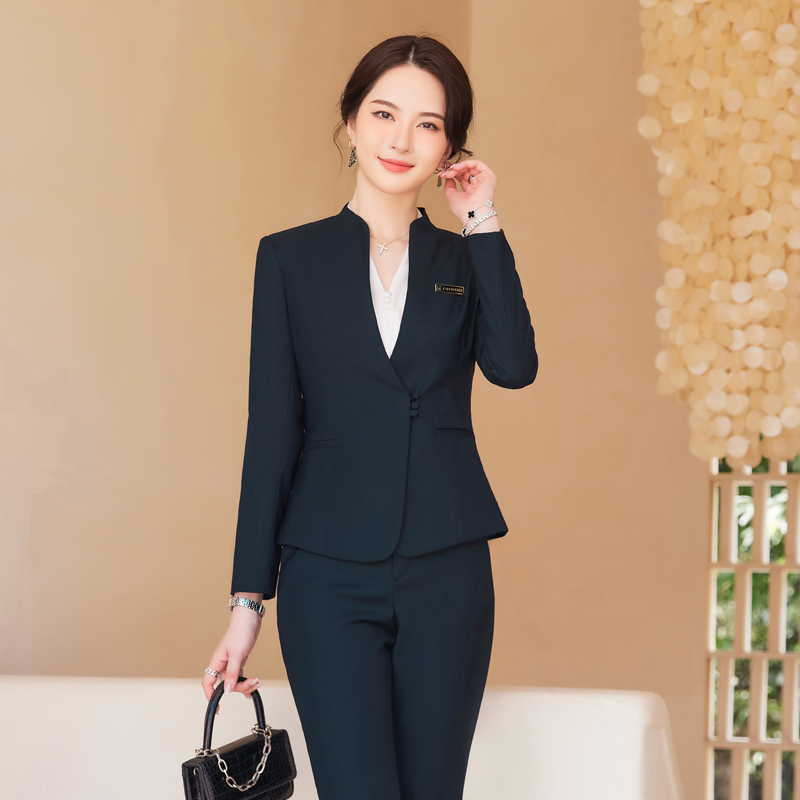 工作服职业气质女秋冬西装套装珠宝店酒店行政无领三件套高端正装