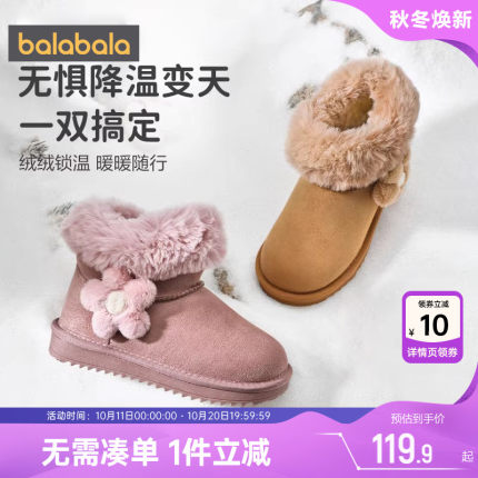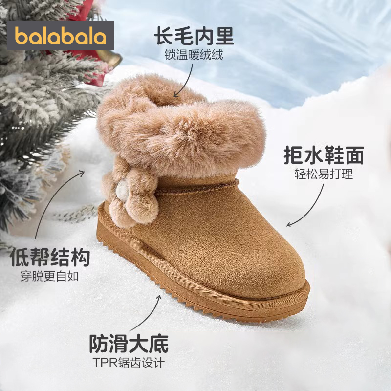 巴拉巴拉女童雪地靴中大童棉靴冬季新款童鞋宝宝鞋子儿童加绒短靴