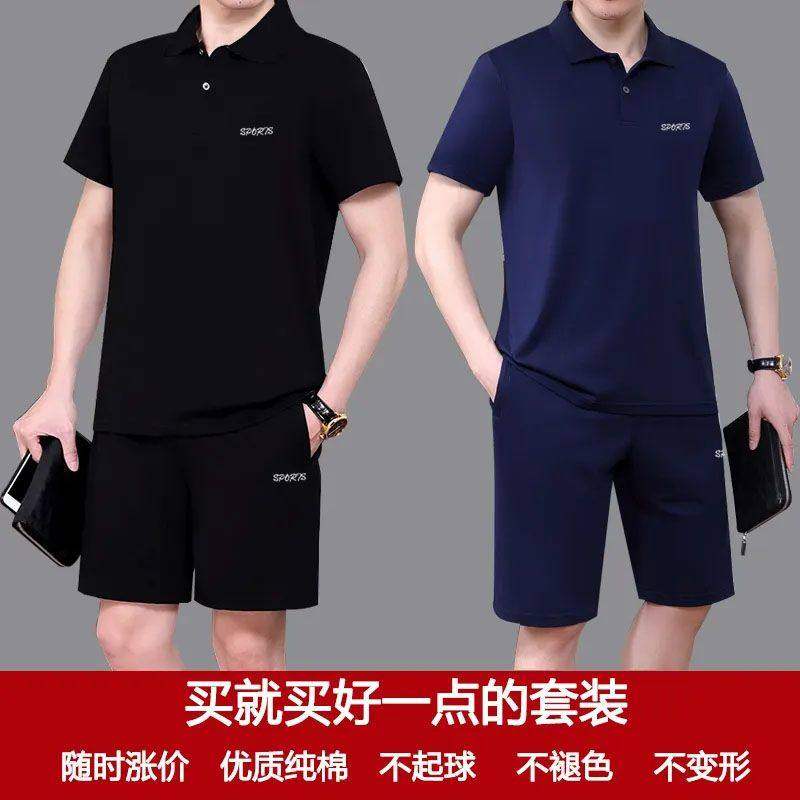 纯棉运动套装男士中老年休闲服套装夏季新款韩版潮流长裤短袖男装
