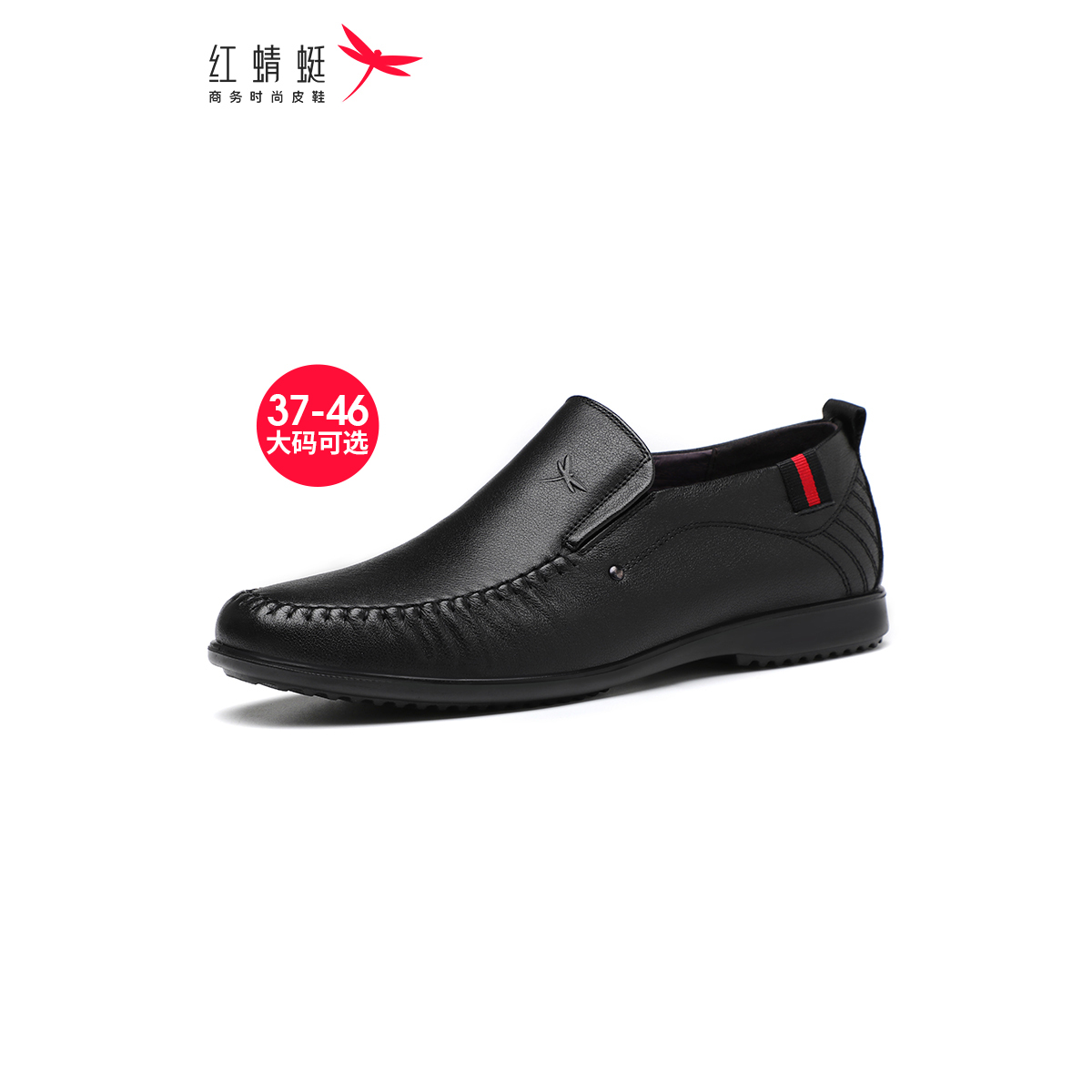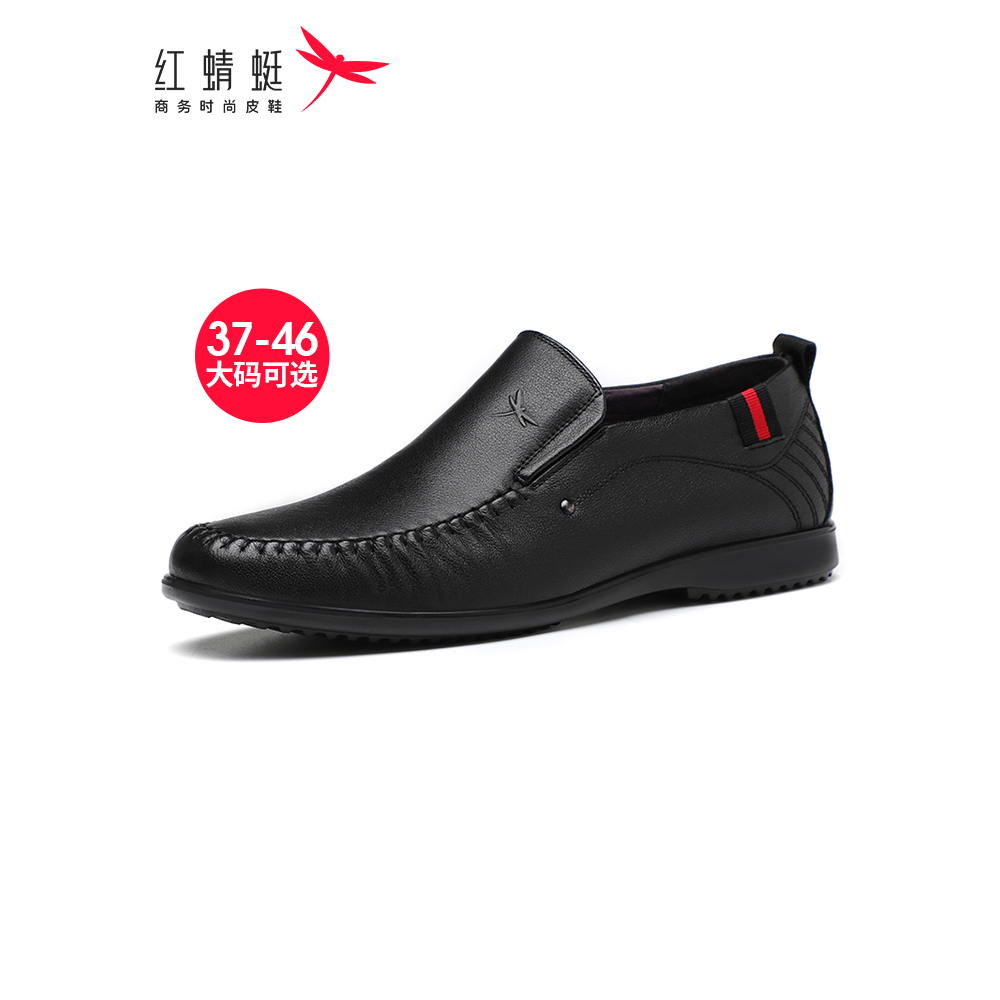 红蜻蜓男鞋一脚蹬皮鞋2025新款头层牛皮商务休闲修豆豆鞋轻便软底