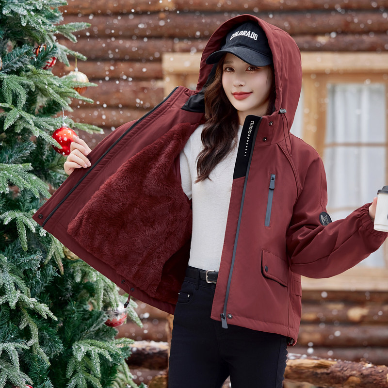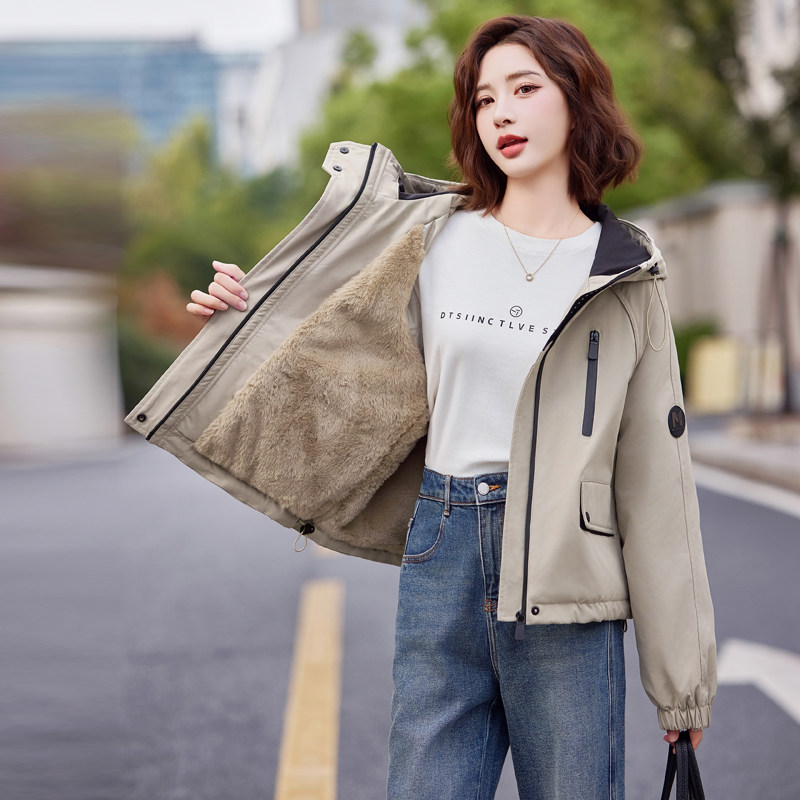休闲短款派克棉服加绒加厚外套女