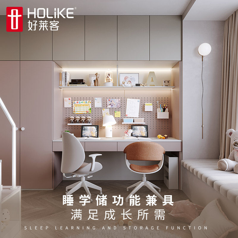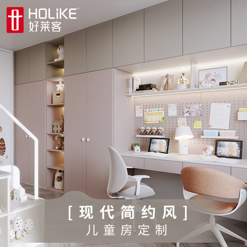 好莱客儿童房间全屋定制 衣柜书桌一体组合设计上下床二胎学习房