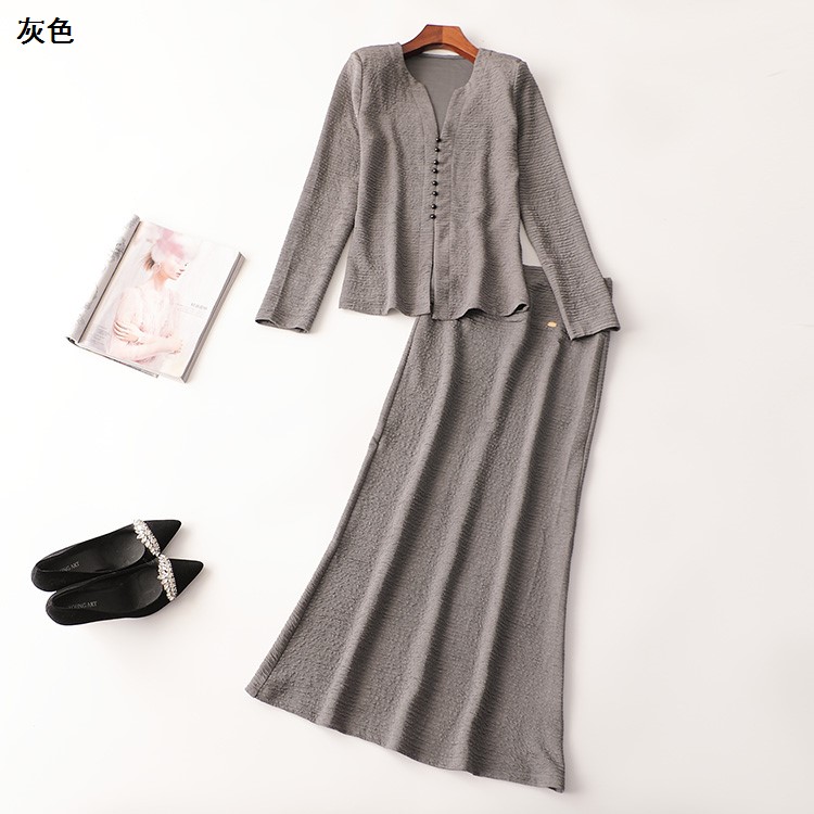 410262 秋衬衣半身裙套装 女长款长袖V领清仓