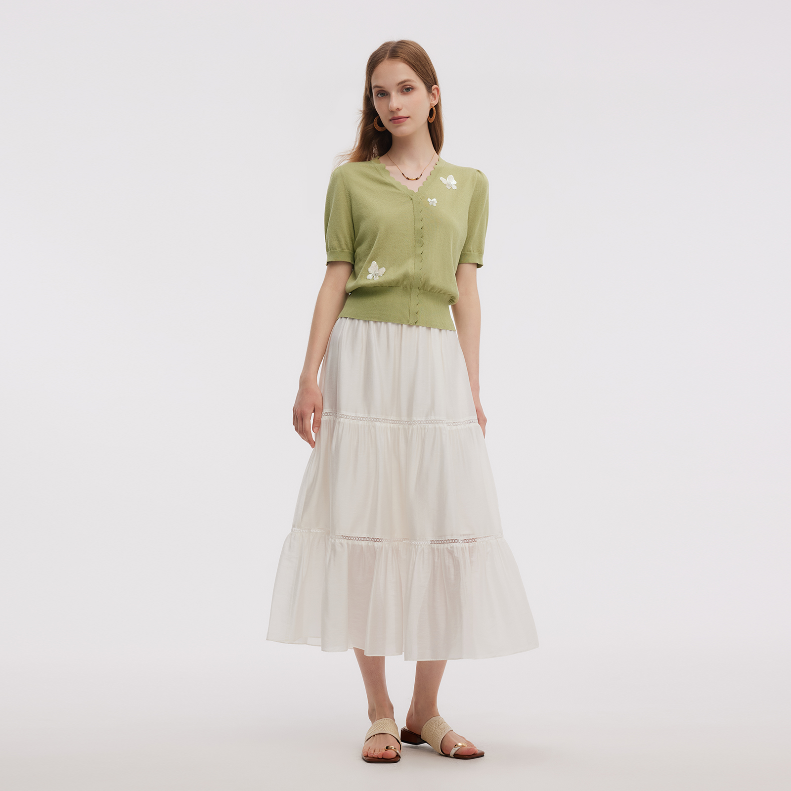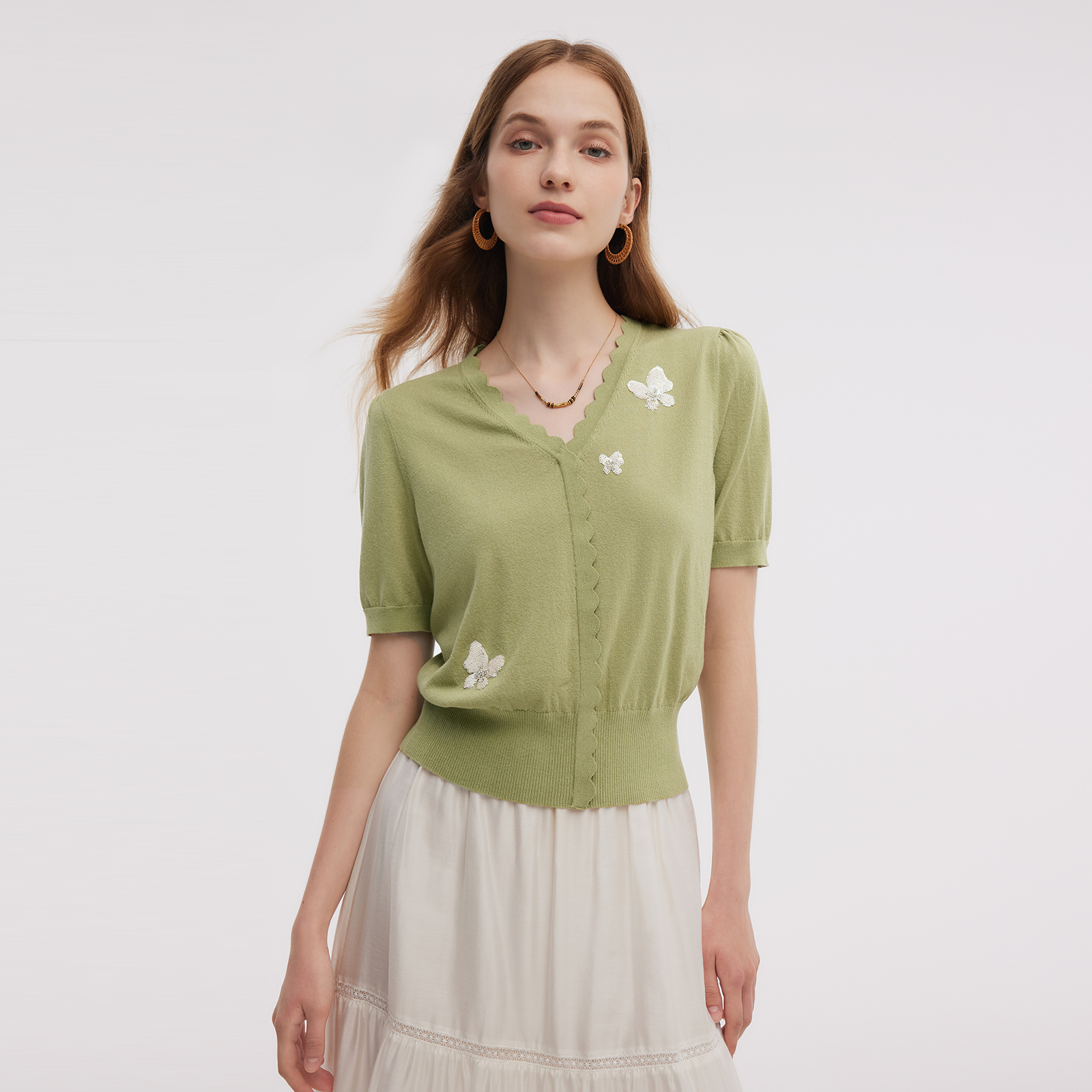 【蝴蝶绣花】歌莉娅天丝上衣女2025新款夏季高知穿搭针织短袖T恤