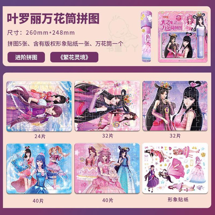 叶罗丽拼图3到6岁儿童益智女孩早教玩具精灵梦公主平图板赠万花筒