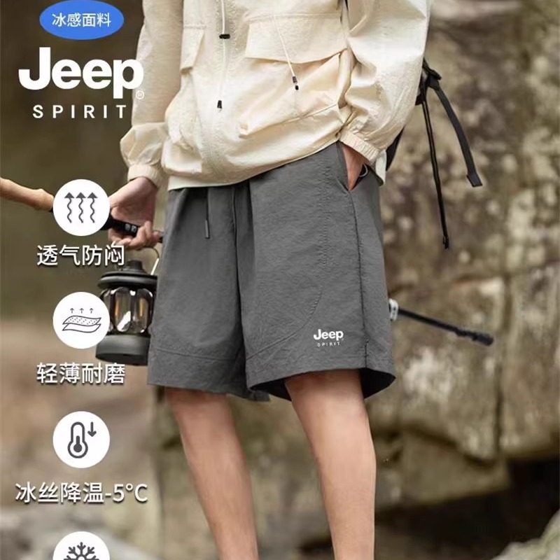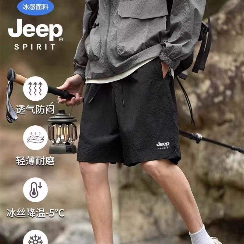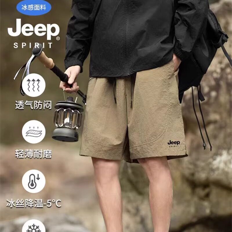 Jeep spirit夏季户外冰丝速干休闲五分裤男士潮牌休闲运动短裤男