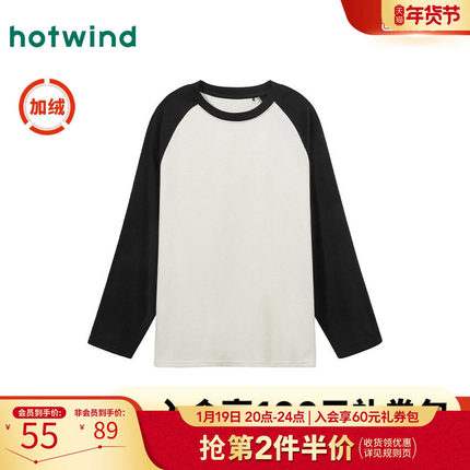 热风女装冬季新款女士加绒保暖长T恤宽松舒适厚款上衣百搭