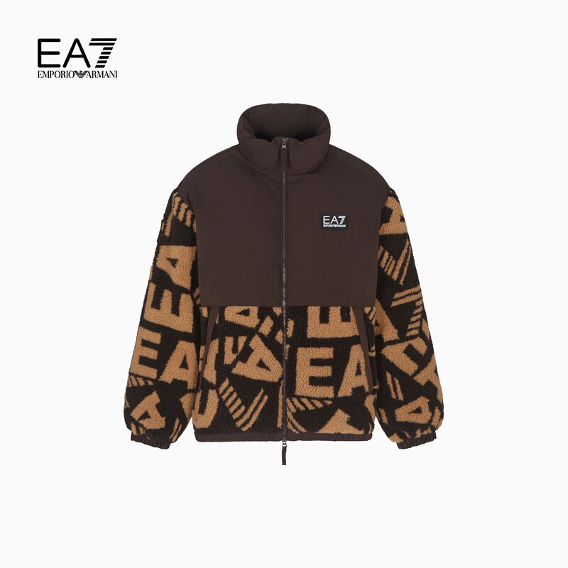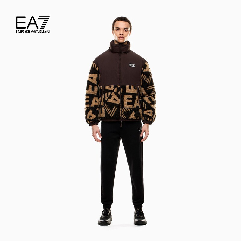 EMPORIO ARMANI/阿玛尼EA7/冬季新款男厚立领泰迪绒拼接棉服外套
