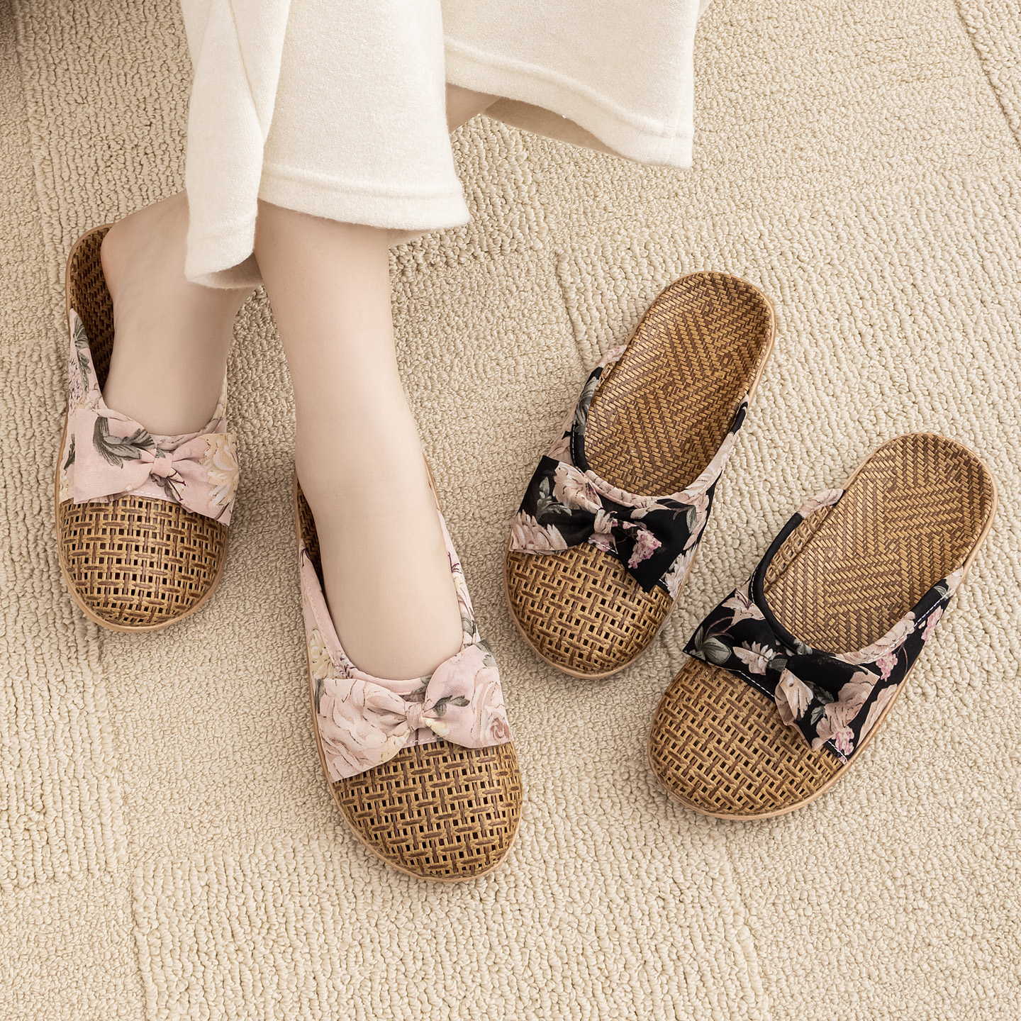 家用拖鞋夏天女士韩版可爱室内防滑棉麻透气软底藤草凉拖鞋居家女
