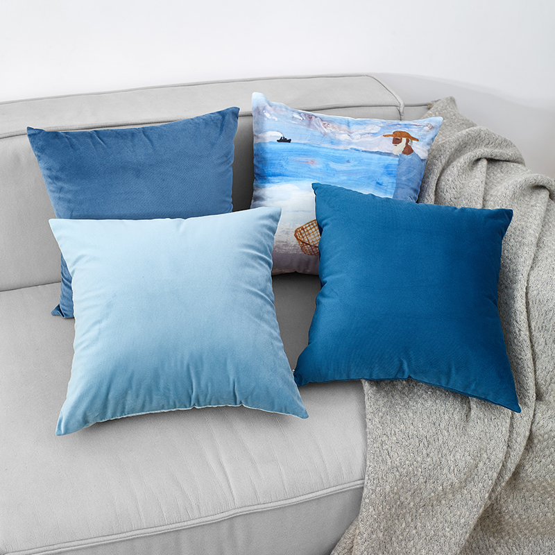 抱枕沙发客厅靠枕床头靠垫大抱枕套不含芯天鹅绒轻奢简约蓝色靠背